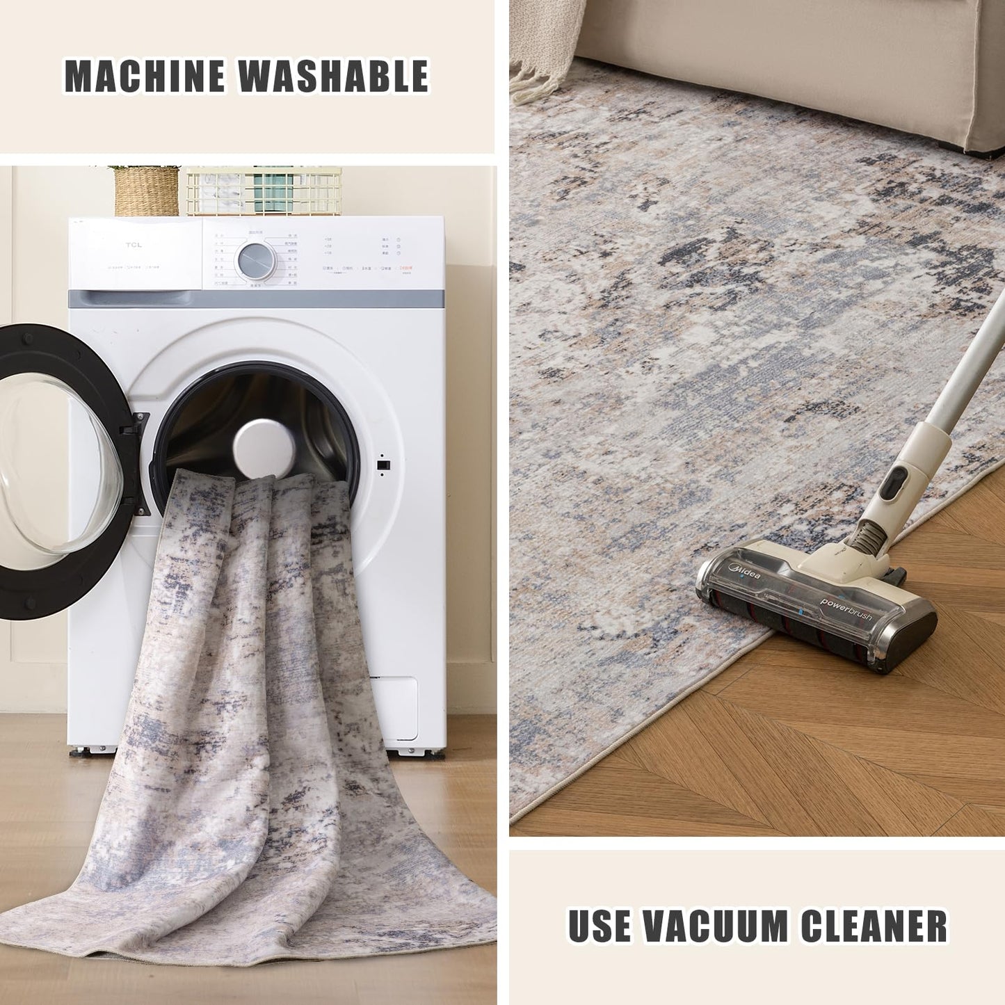 - 【Machine Washable Rug】: The rug for living room is easy to sweep and clean. Light stains can be cleaned with towels. Flat and thin living room area rug is suitable for robotic vacuums clean. The vacuum cleaner can also pick up fallen debris and hair. The thin and lightweight design is convenient to machine wash. Do not use the dryer to prevent damage to the bottom of the throw rug.