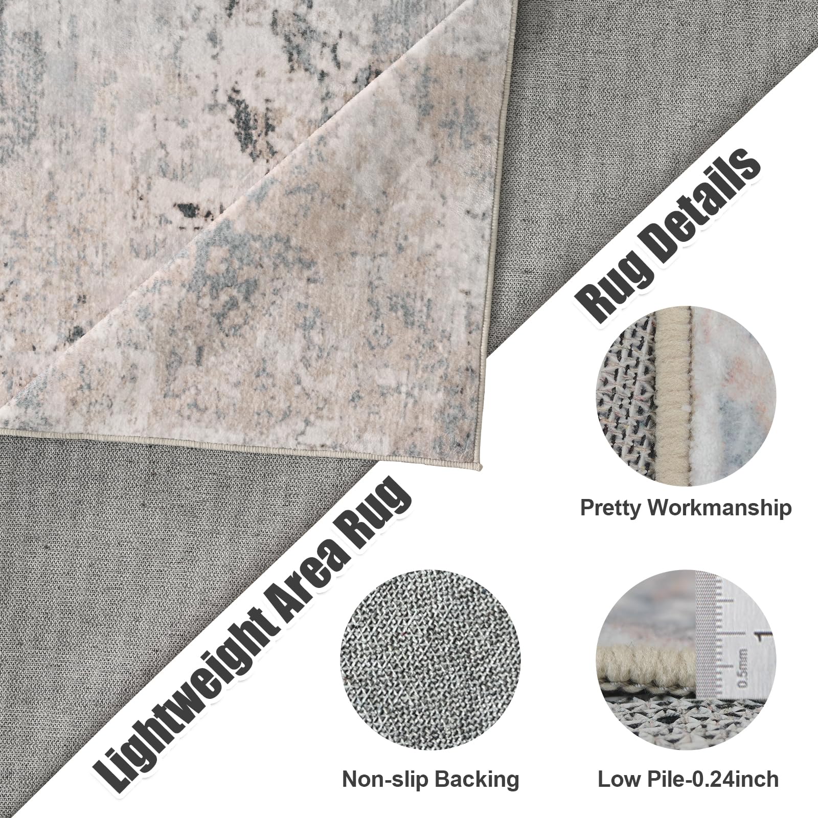 - 【SOFT LOW PILE】: The modern area rug is made of premium faux cashmere with a pile height of 0.24inch. Low-pile washable rug is suitable for high-traffic areas. The bedroom rug feels wonderful under your feet, and the low pile design is more convenient for you to care and clean. This washable area rug is great for helping to eliminate cold floors. Well constructed and the material provides a soft feel.
