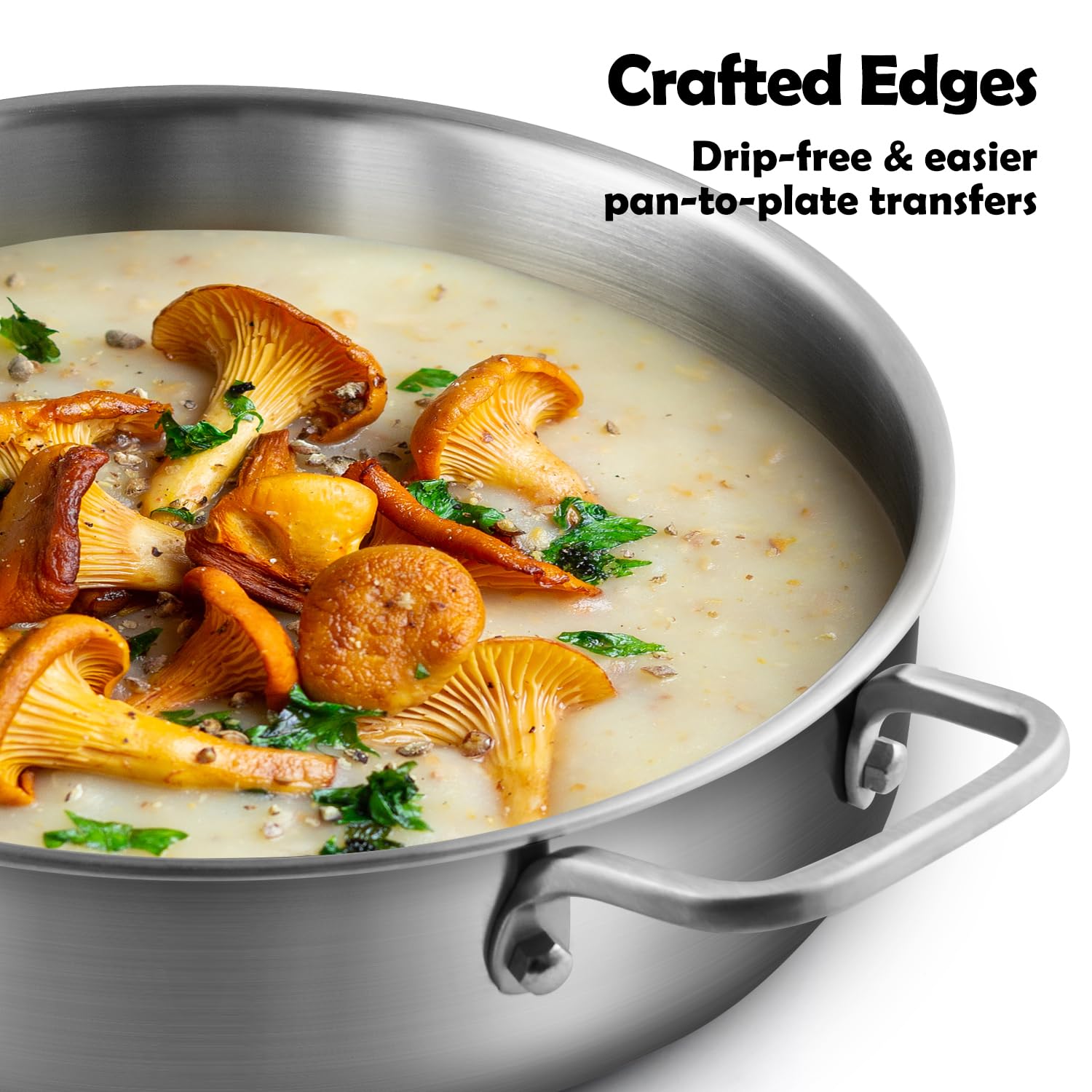 • 【TRI-PLY STIANLESS STEEL】Tri-Ply Stainless Steel Pan Combines Ergonomic kitchenware Design and superior features for better cooking performance. Stainless steel surface doesn't react with food or alter flavors.