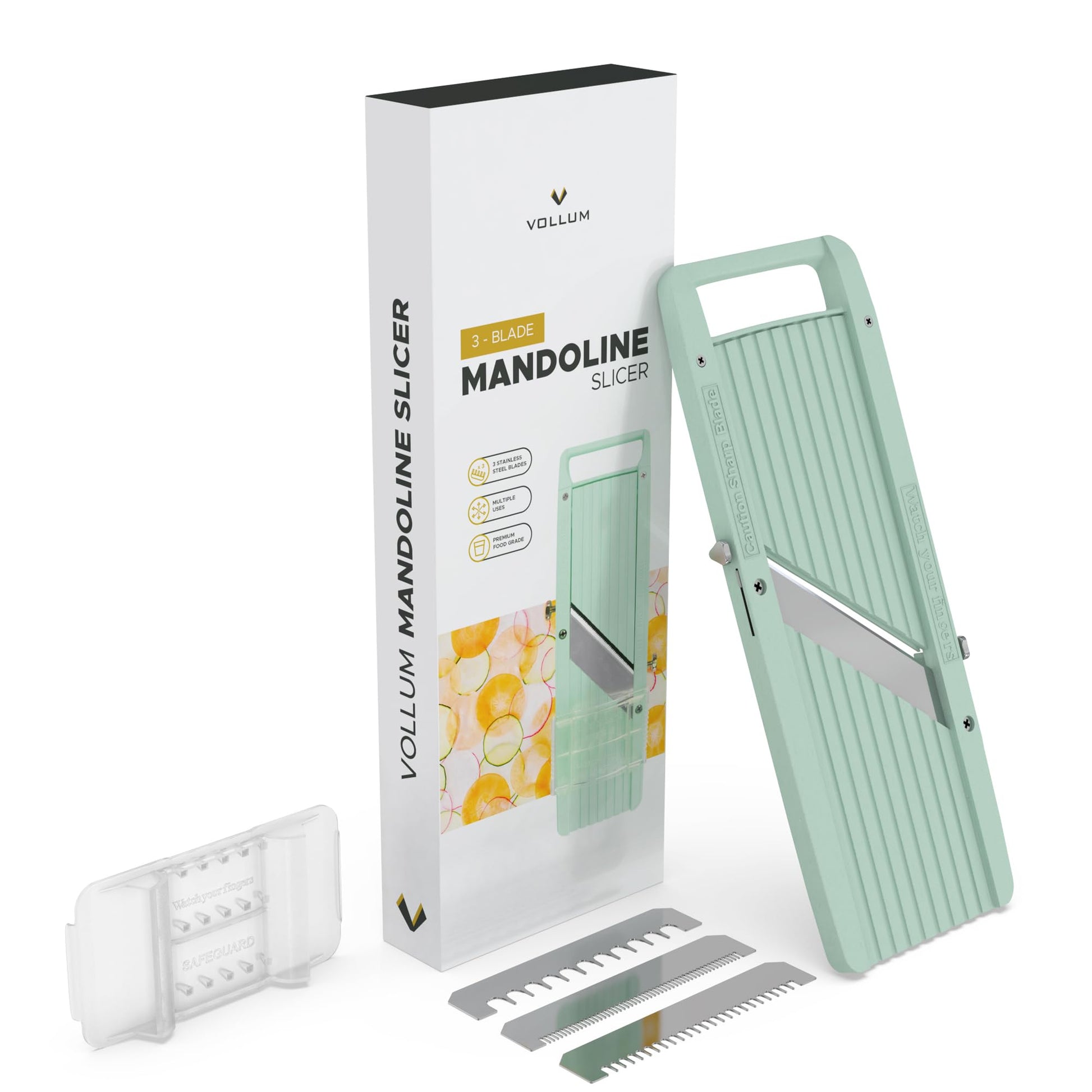 Vollum Narrow Mandoline Slicer for Kitchen – Professional Slicer Vegetable Cutter Japanese Mandoline Slicer with Interchangeable Stainless Steel Blades – Food Manual Slicer Handheld Mandoline Slicer