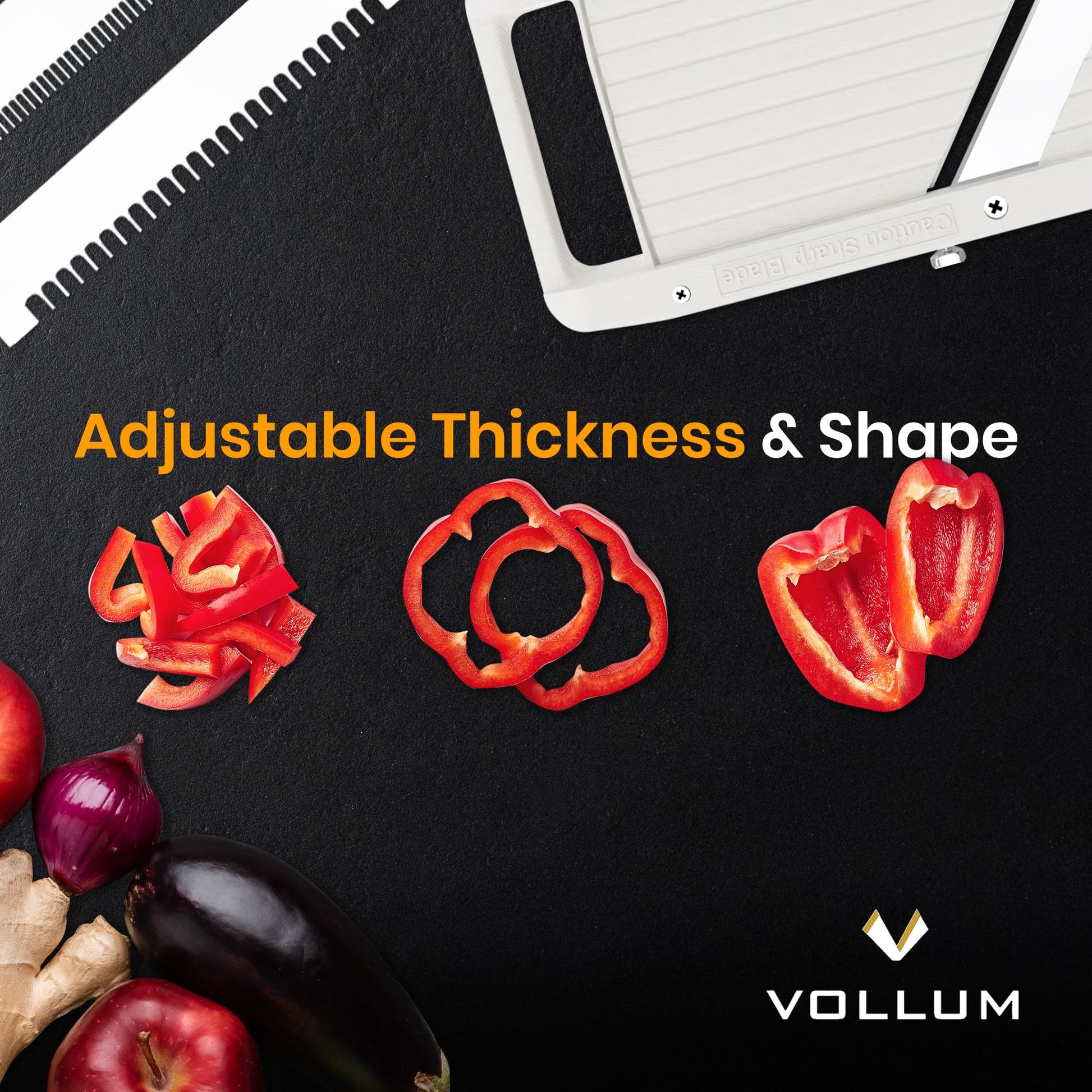 - Endless Possibilities: The Vollum mandoline slicer is incredibly versatile and can be used to slice a wide range of veggies and fruits, from potatoes, zucchinis, apple, tomatoes, cucumbers, carrots, and much more, saving your time and energy during cooking!