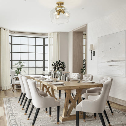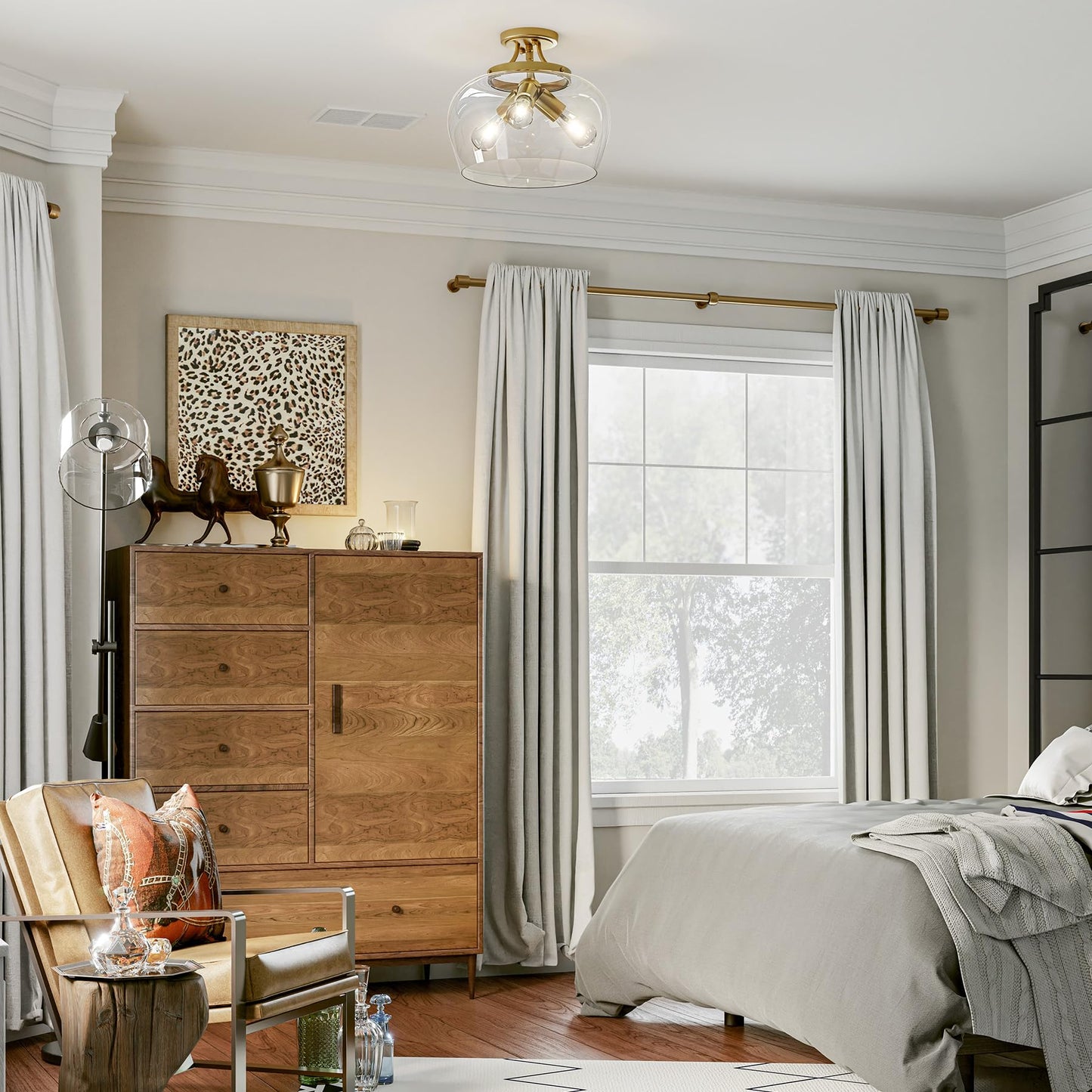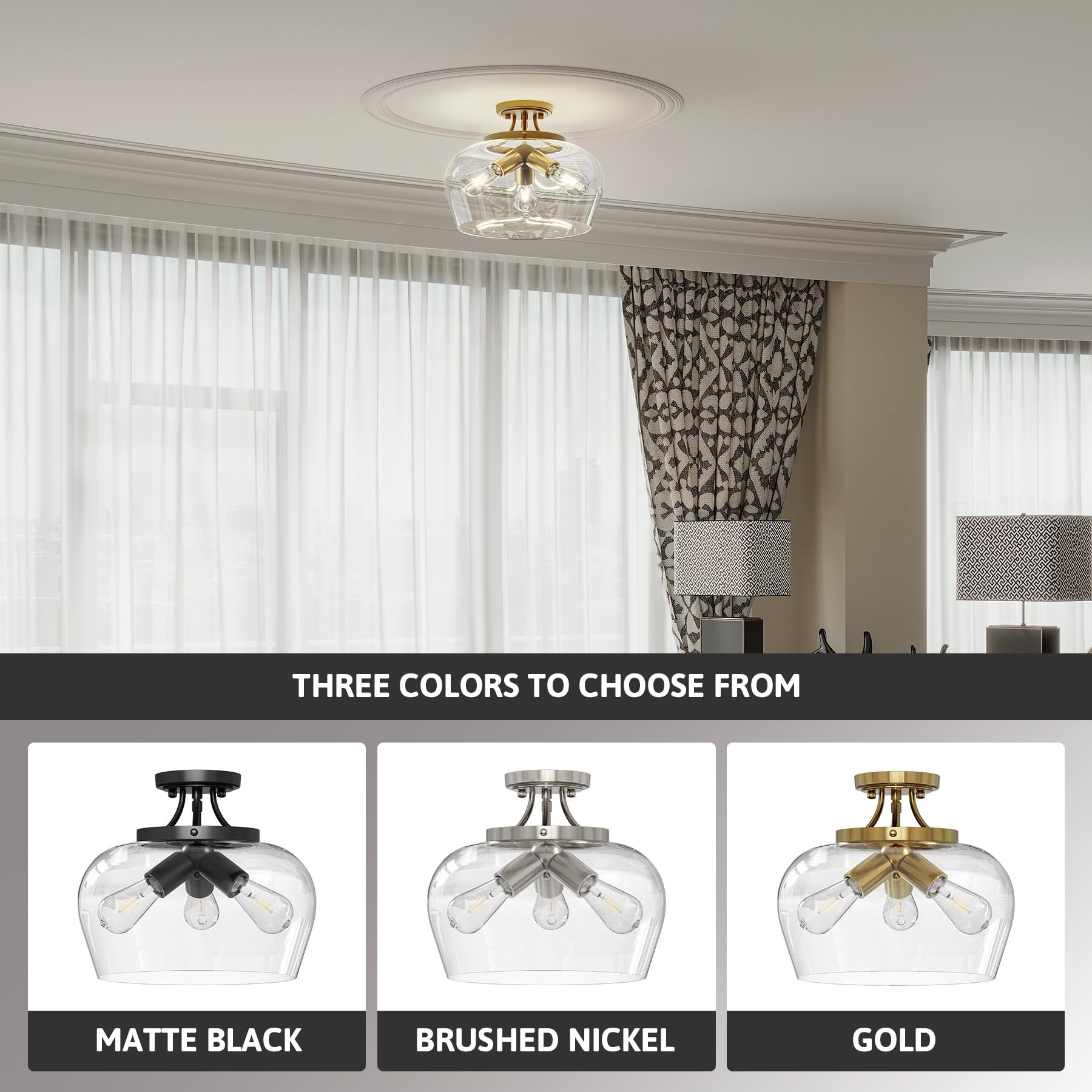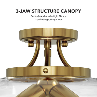 VONLUCE Semi Flush Mount Ceiling Light, 13.8" Ceiling Light Fixture with Clear Glass Shade, E26 Base, 3-Bulb Industrial Ceiling Light for Hallway Entryway Kitchen Bedroom, Brushed Gold