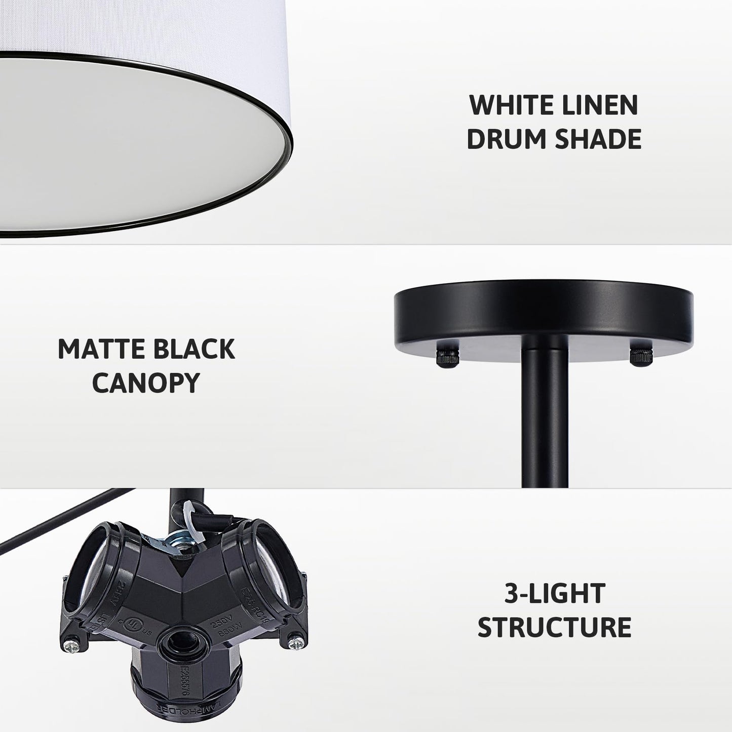 VONLUCE Semi Flush Mount Ceiling Light, 18" Ceiling Light Fixture with Diffused Shaped, 3-Light Modern Drum Light Fixture for Bedroom Living Room Entryway Hallway, White Shade & Black Finish