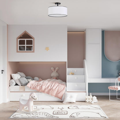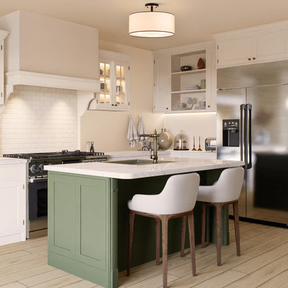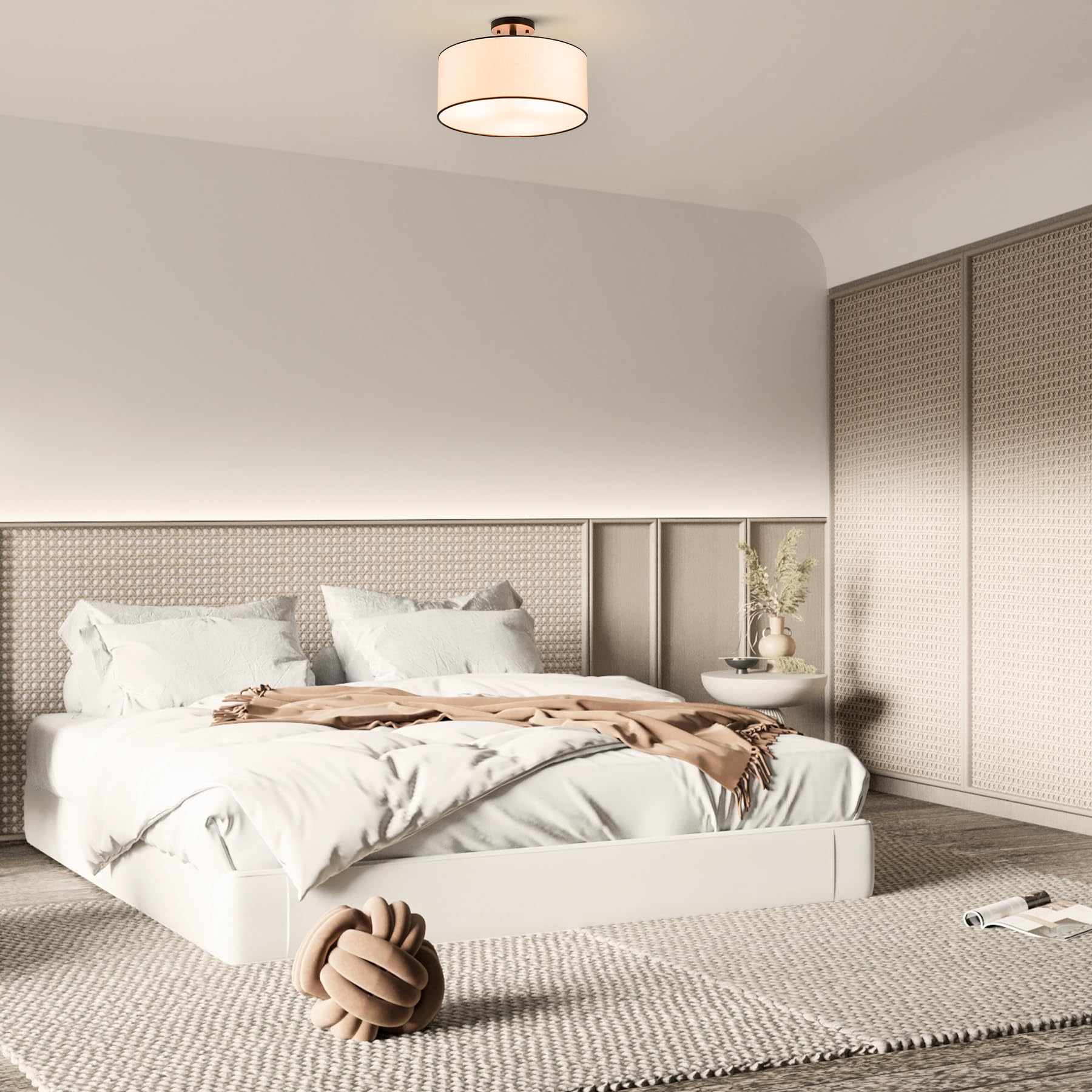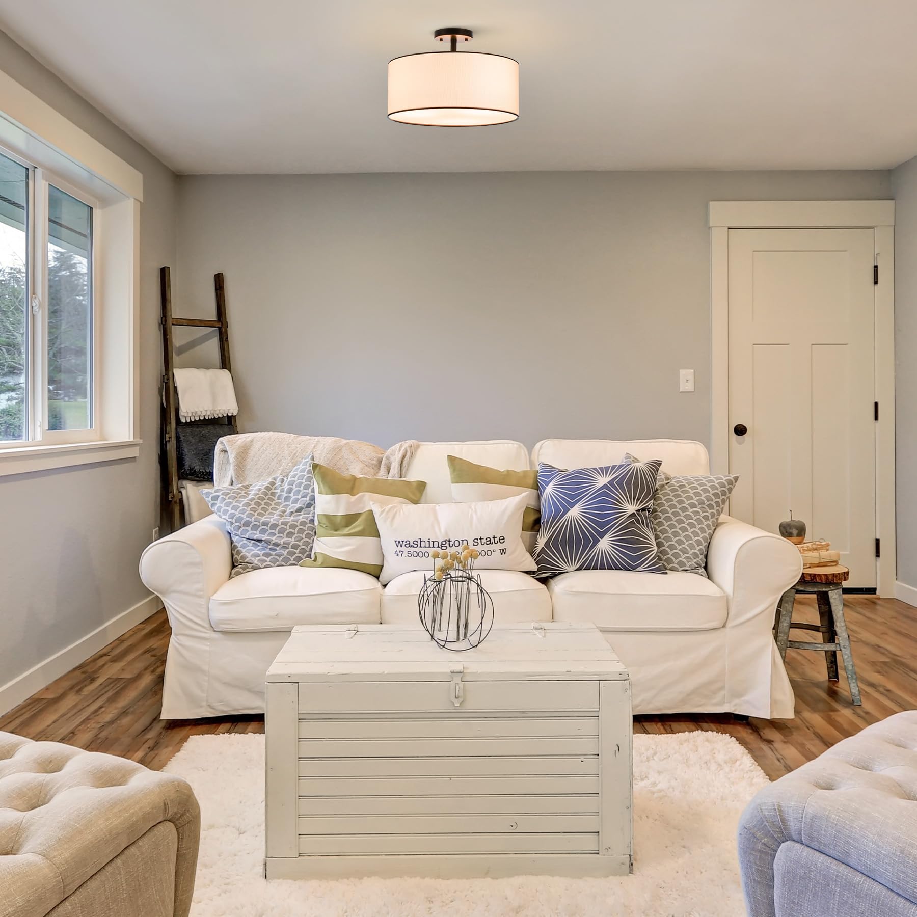 - Classic Charm Ceiling Light: Vonluce’s semi-flush mount ceiling light combines a stylish drum-shaped shade with a sleek matte black canopy, adding timeless charm to any interior style, from classic and contemporary to industrial and modern