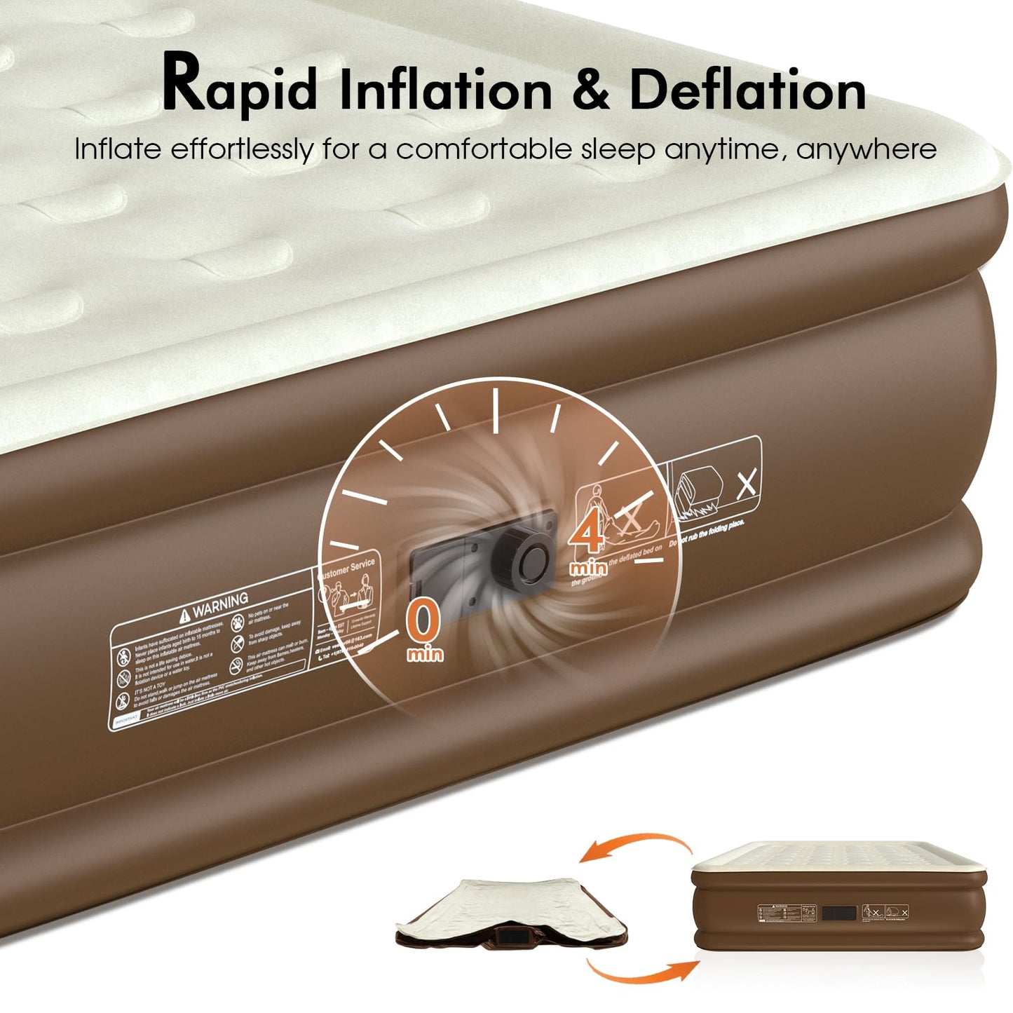 - 【Versatile Usage】: With its quick and easy inflation and deflation, this queen air mattress is perfect for any setting, whether at home, hosting guests, camping, or as a gift for family and friends