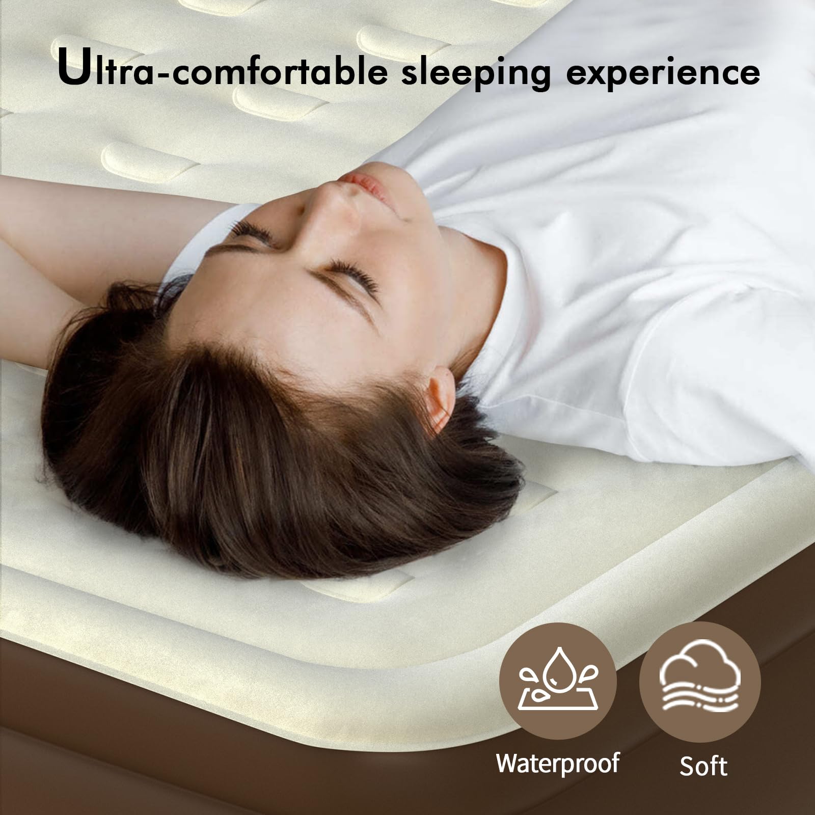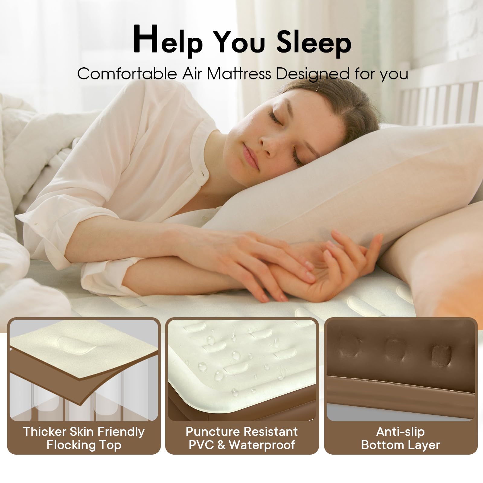 VOSSER Air Mattress Queen with Built-in Pump,Leakproof Blow Up Mattress with Flocked Top,3 Mins Inflatable Mattress for Home&Guests,Thicken Queen Air Mattress, Waterproof Air Bed with Carry Bag