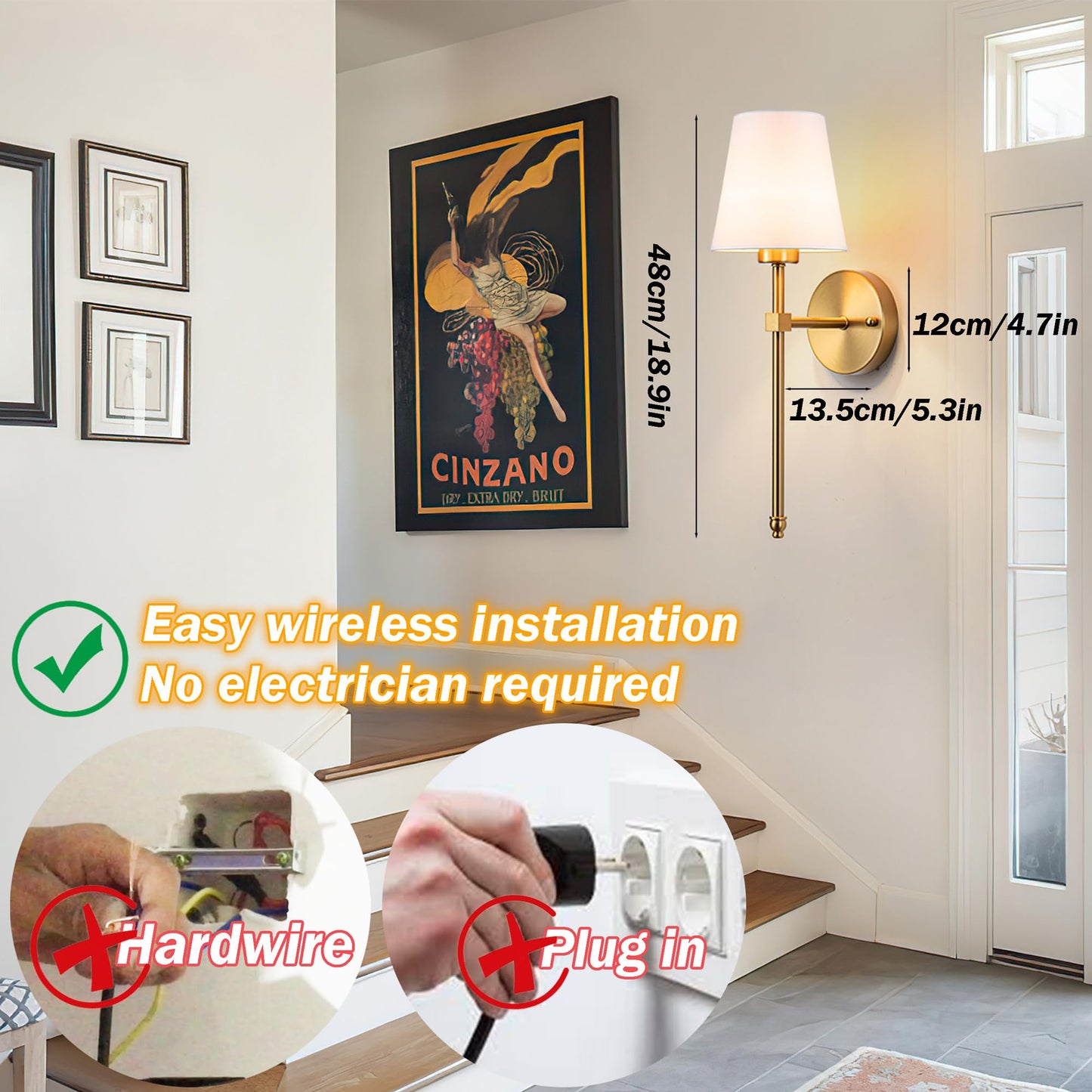- Cordless Wall Sconces Set Of Two: The battery wall sconces are a breeze to assemble and install, no need to hire an electrician or use tacky exposed wires, so you don't have to look for wires or worry about where the plug is, enabling you to place the light exactly where you want it, perfect for old houses, rentals, or any dark corner that needs lighting. Wireless design, can also be used during power outages.
