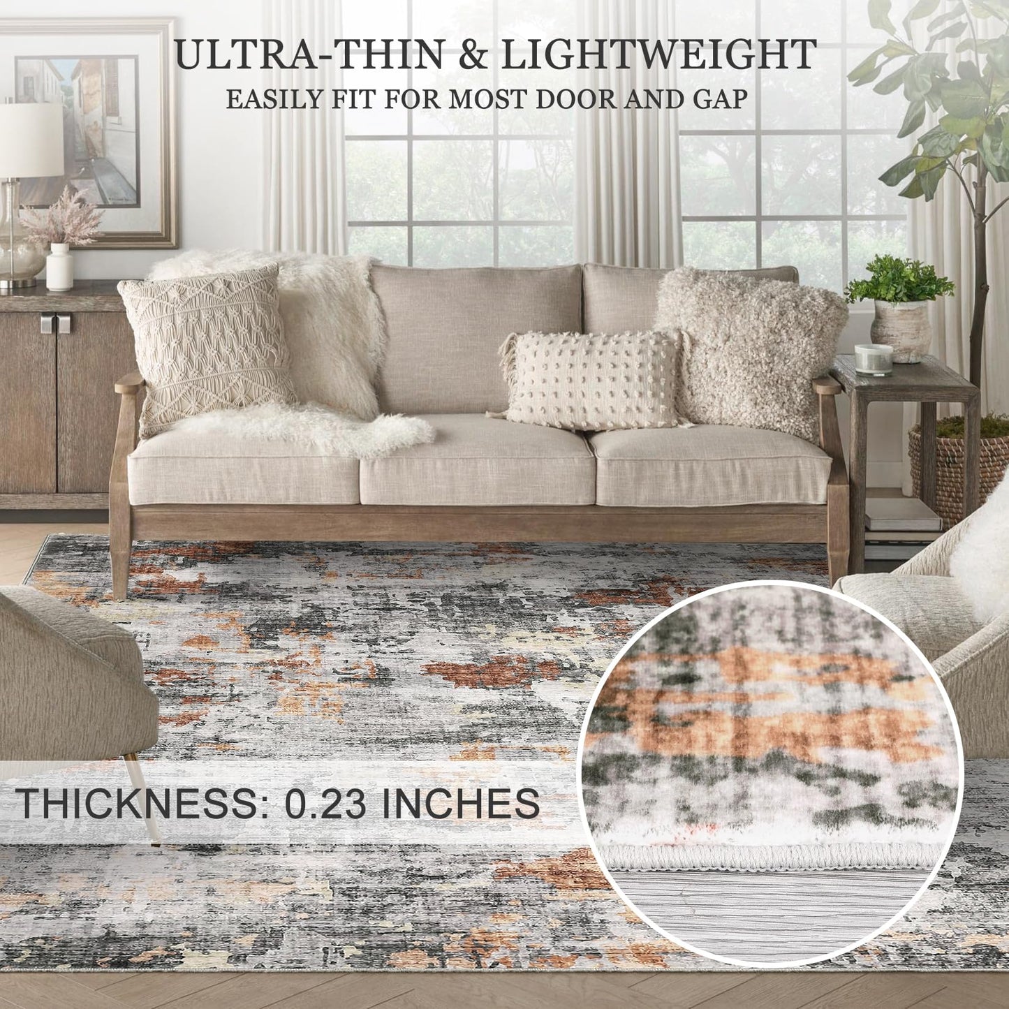 - Low Pile & High Durability: Our washable rug features a 0.24" low pile design for maximum durability in high-traffic areas like entryways and under furniture. Perfect for long-lasting convenience without obstructing doorways, this rug seamlessly combines style with resilience to elevate any living space.