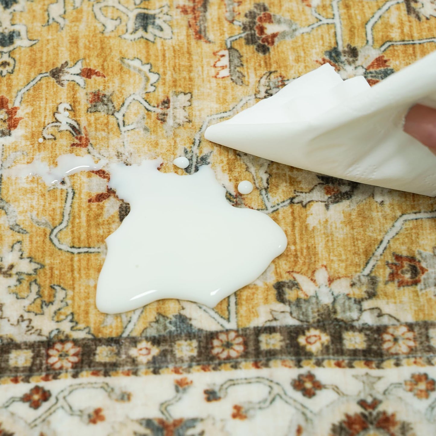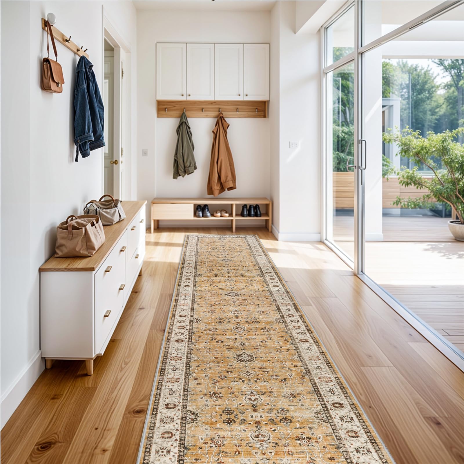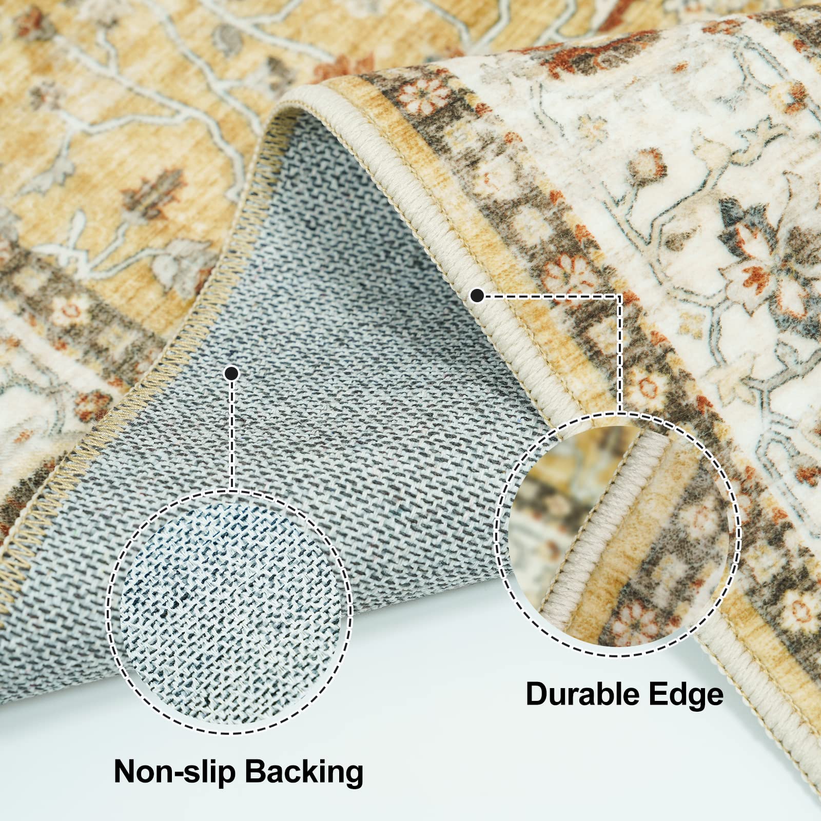 Washable Runner Rug 3x14 - Hallway Runner Rug Kitchen Rugs and Mats Non Skid Washable Waterproof Carpet Runner for Living Room Bedroom Bathroom (Gold, 3X14)