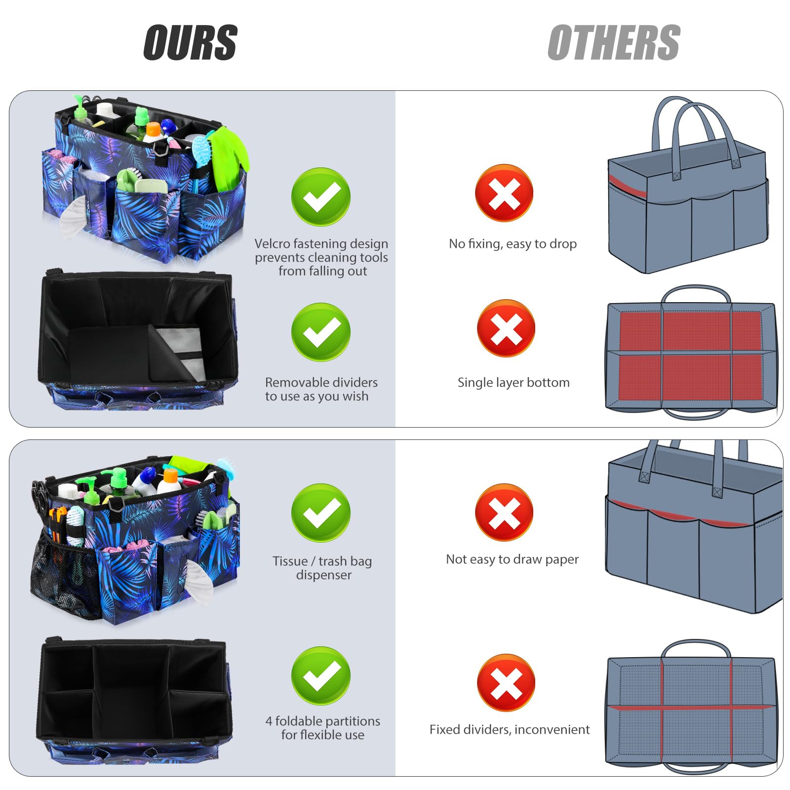 - 【Four Foldable Dividers】: Inside the cleaning bag, you will find four foldable dividers that can be expanded to create five compartments. This ingenious design enables you to organize and categorize your cleaning supplies effortlessly, making your cleaning tasks more efficient and systematic.
