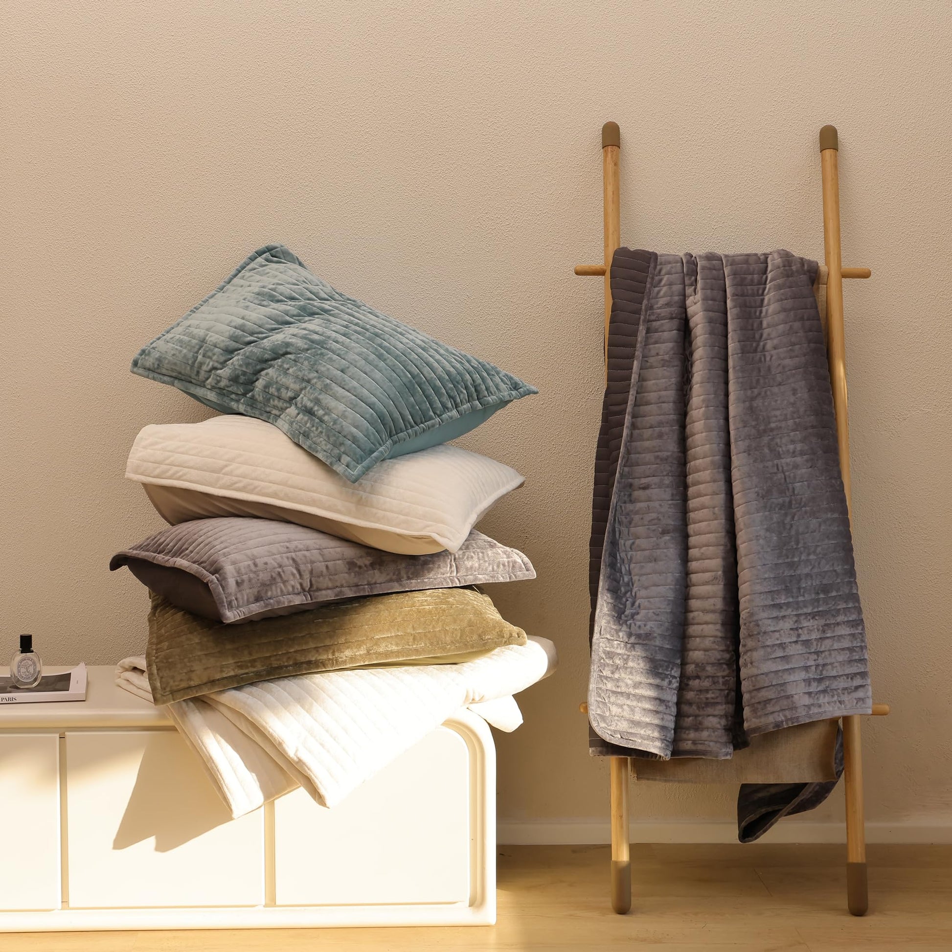 - Luxurious Bedding: Velvet quilt set is luxurious featuring lustrous velvet for the face, Its stunning appearance creates an opulent atmosphere, making it the focal point of any room. The stripe pattern adds a touch of sophisticated style to your bedroom decor.