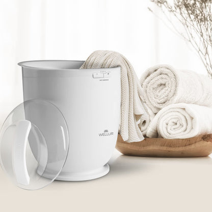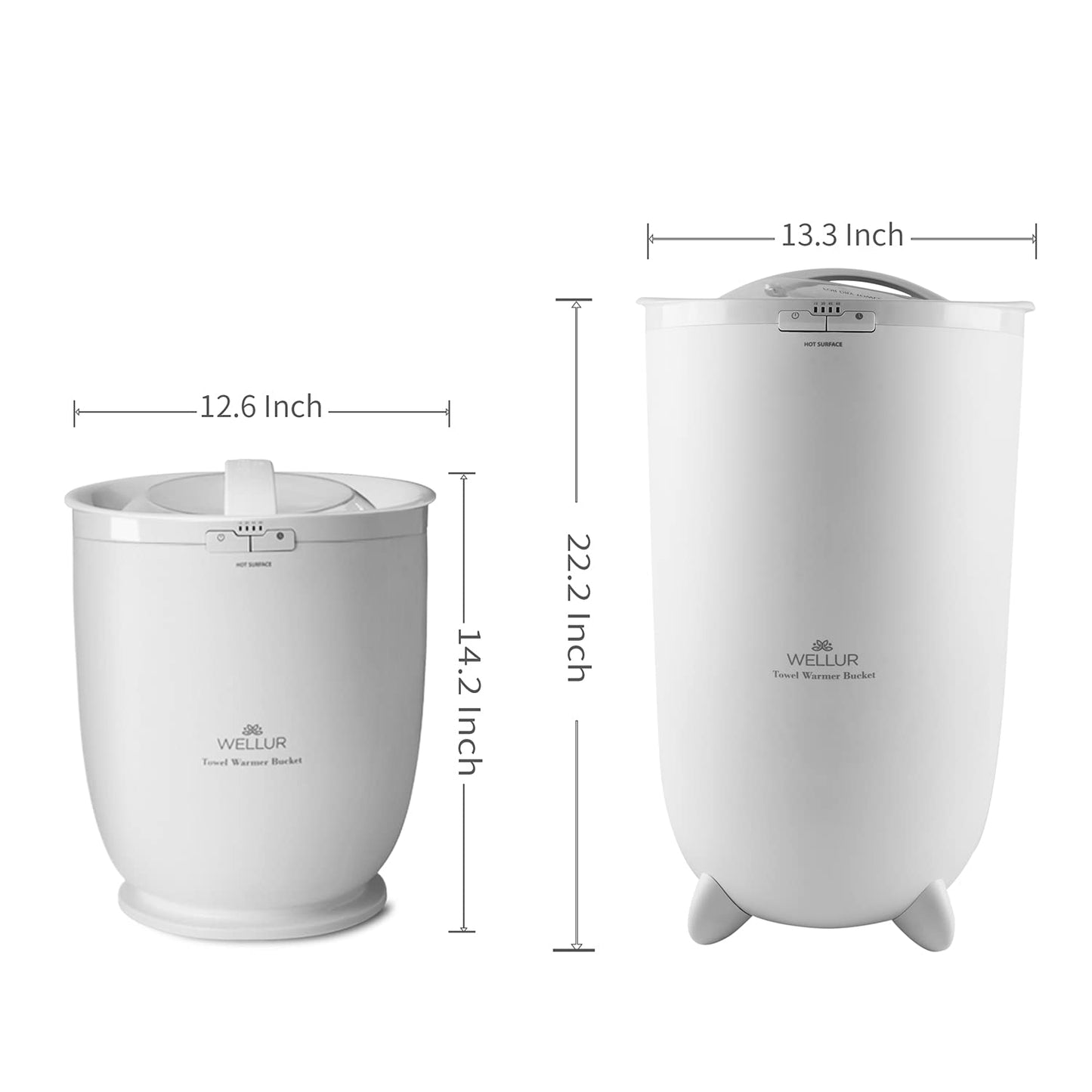 Details: WELLUR - Towel Warmer Bucket. Step out of the shower and wrap yourself in the cozy comfort of a nice warm or hot towel. The Towel Warmer Bucket warms any towel in just minutes. Simply place the towel in the Towel Warmer Bucket, press the built-in timer that lets you heat towels for 15, 30, 45, or 60 minutes before automatically shutting off.