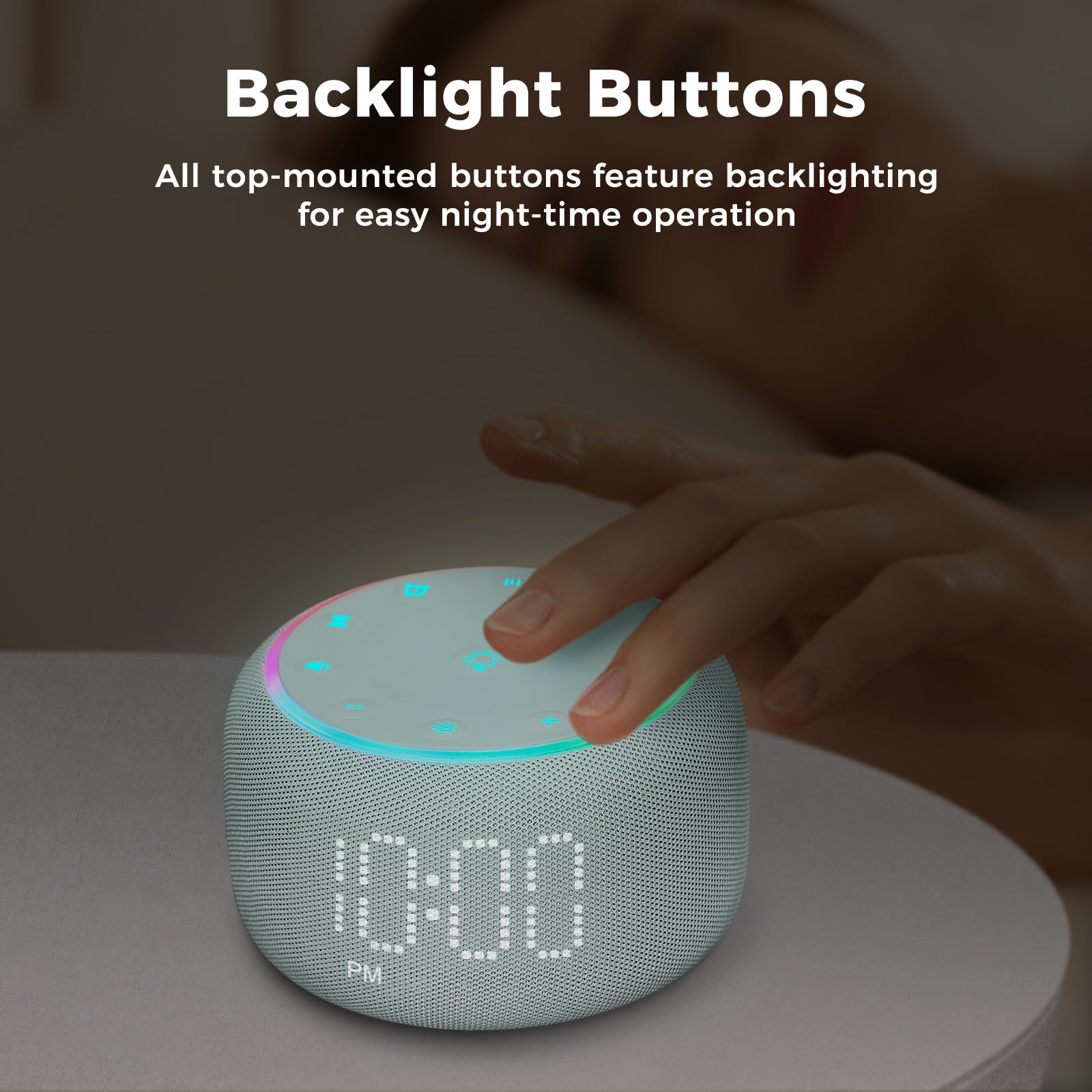 White Noise Machine Alarm Clock for Bedrooms - 5W Stereo Bluetooth Speaker - 24 Soothing Sounds - 9 Night Lights - Auto-Dimmable Digital Alarm Clock Sound Machine for Sleeping