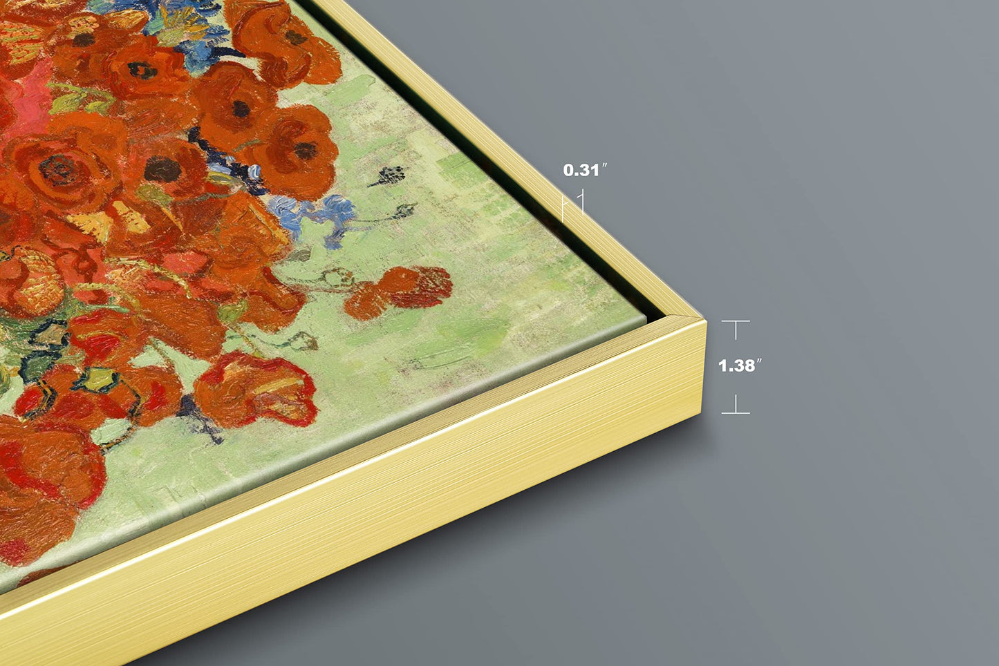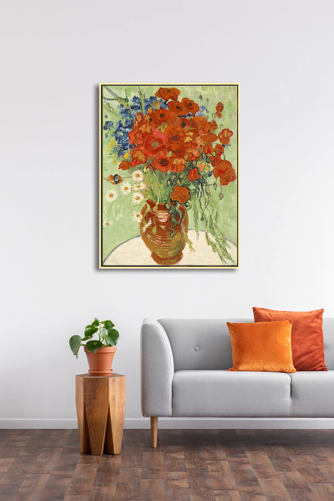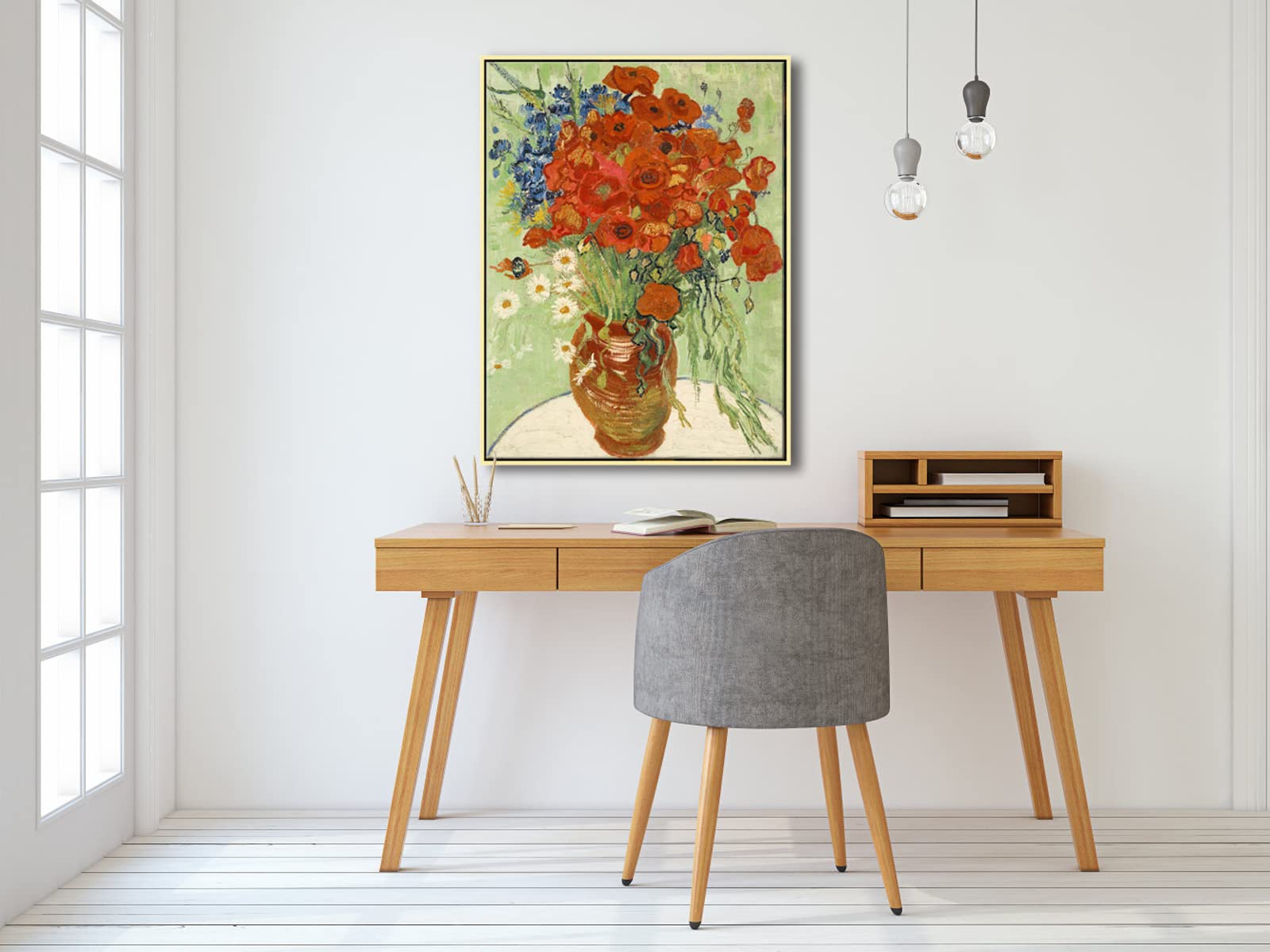 Wieco Art Gold Framed Art Red Poppies and Daisies Large Canvas Prints Wall Art of Van Gogh Famous Artwork Oil Paintings Reproduction Classical Flowers for Living Room Home Decor