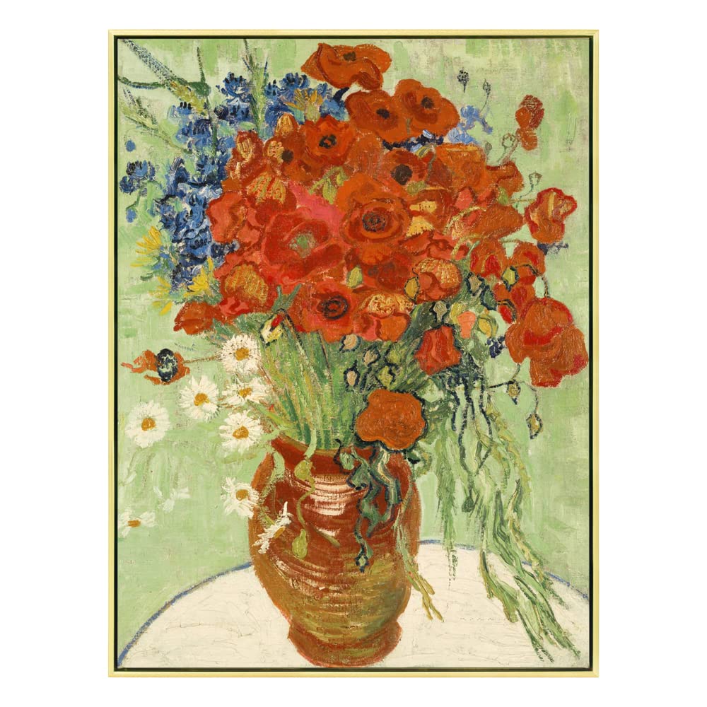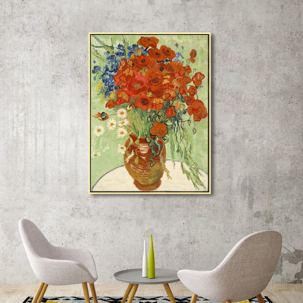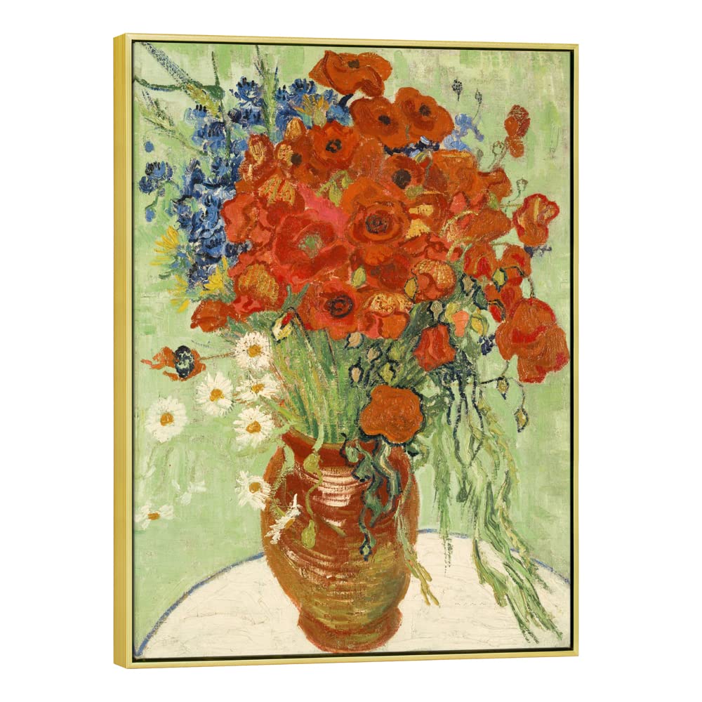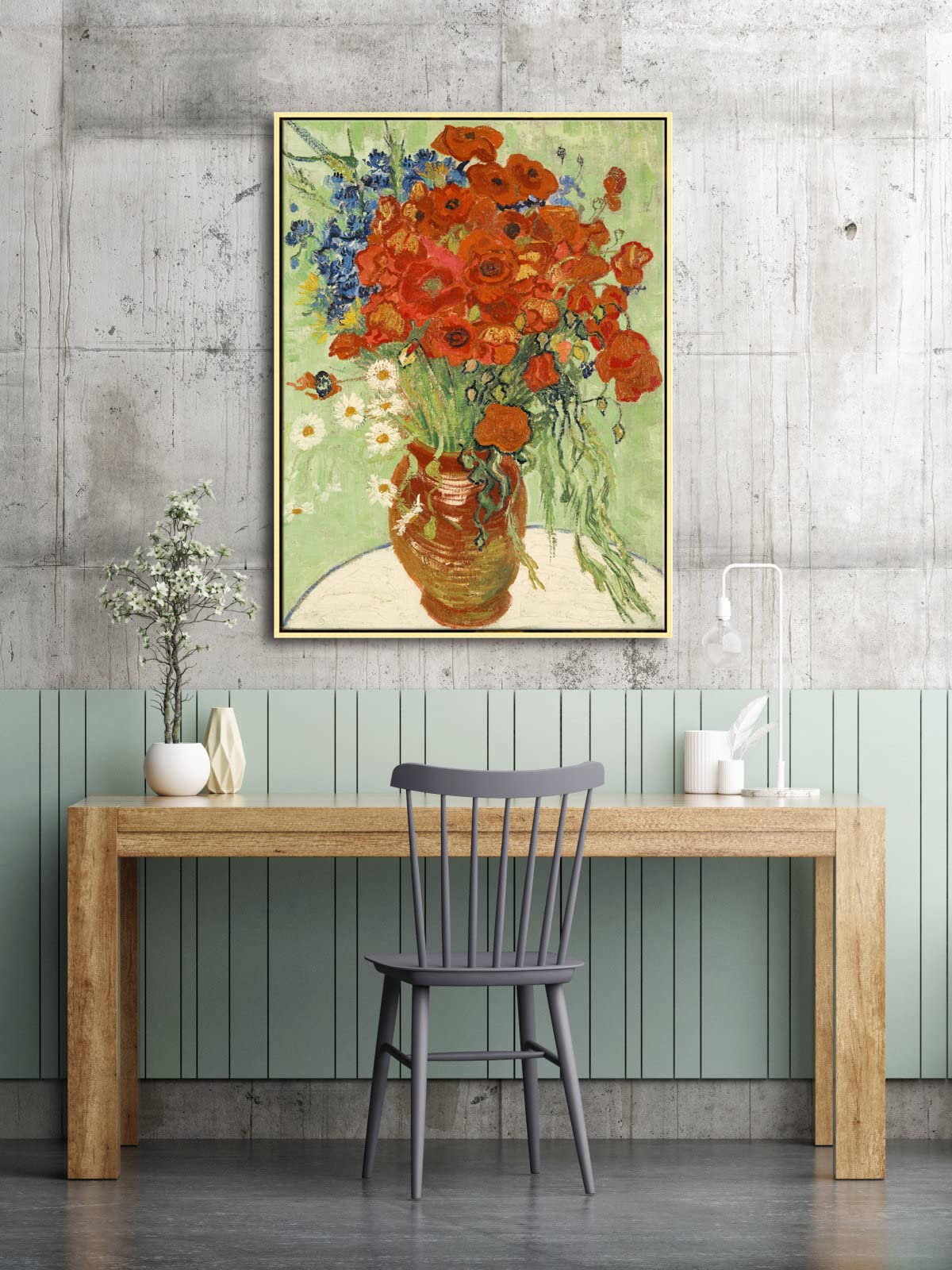 Wieco Art Gold Framed Art Red Poppies and Daisies Large Canvas Prints Wall Art of Van Gogh Famous Artwork Oil Paintings Reproduction Classical Flowers for Living Room Home Decor