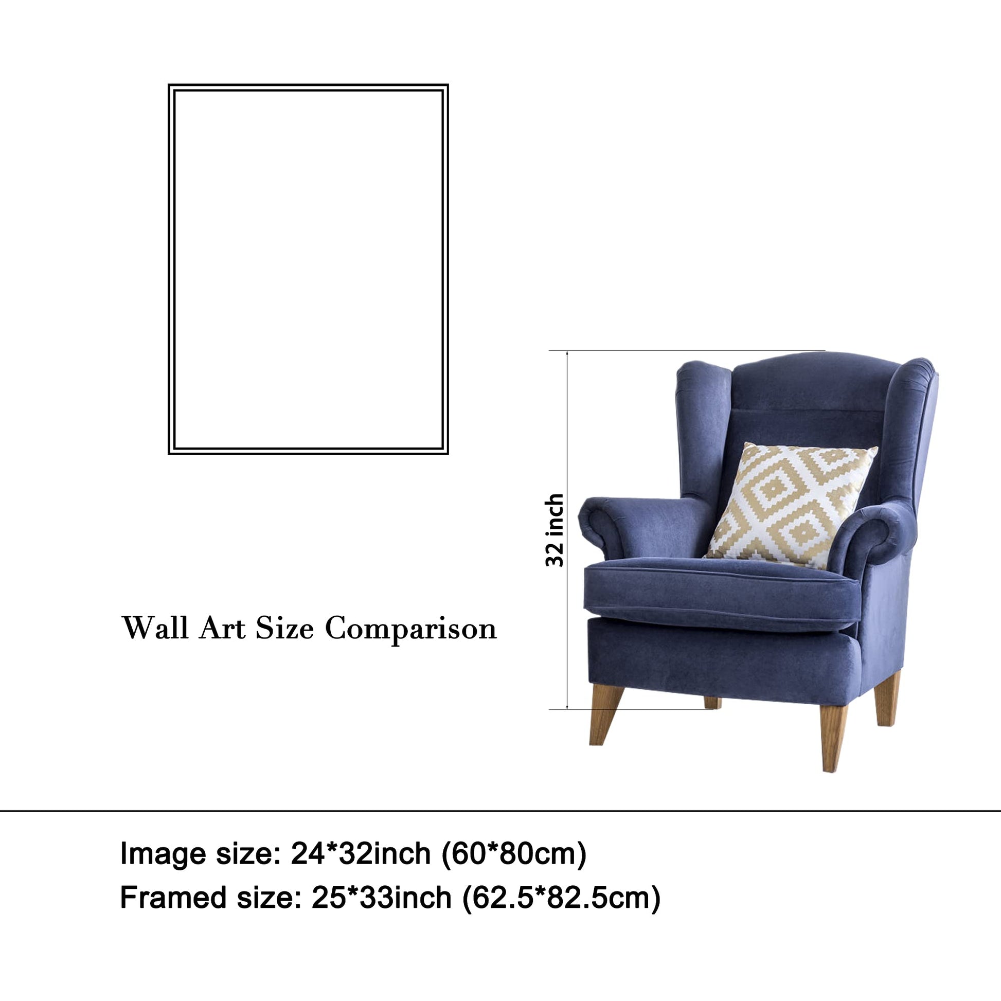 - Art image Size:(W) 24 in x (H) 32 in.Finished Framed Size: (W)25in x (H) 33in,1.4inch thick.
