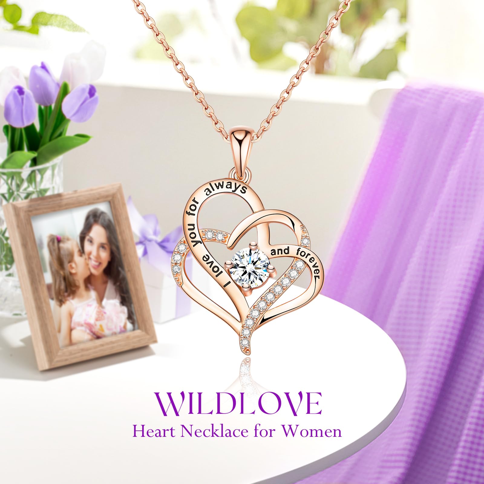 - I LOVE YOU GIFTS FOR HER - The interlocking hearts pendant is set with sparkling stones that represent you and mom unbreakable bond. The open heart necklace is engraved with "I love you for always and forever", No words are needed between two loving hearts, this heart necklace expresses love for mom.