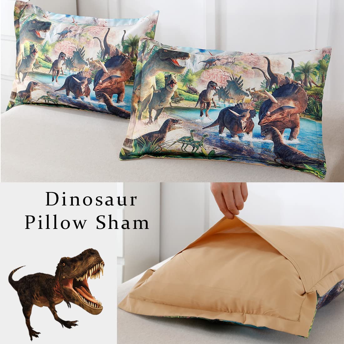 - Set Include: 2 Pieces Twin Comforter Set - 1 x comforter 68 x 86 inches and 1 x pillow case 20 x 30 inches; the 3d dinosaur print is designed for boys teen and girls who loves dinosaurs. It is a great room decor for your kids room