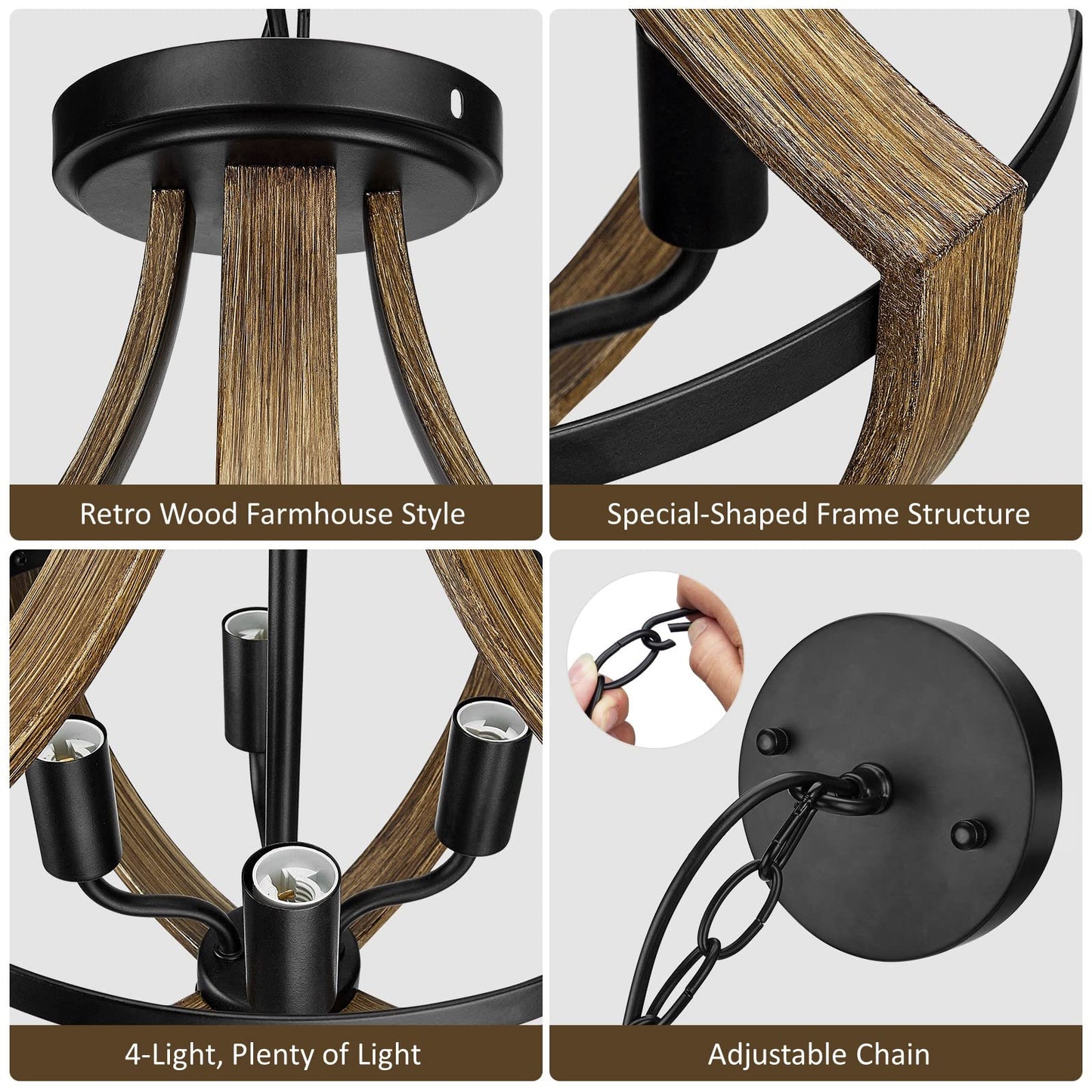 - 【Safety and Quality Assurance】This farmhouse chandelier has passed UL certification, and the certification ID is E484132. WOAEKR is a factory to manufacture light fixtures, the factory has been established for 15 years, offering high quality products at affordable prices backed.