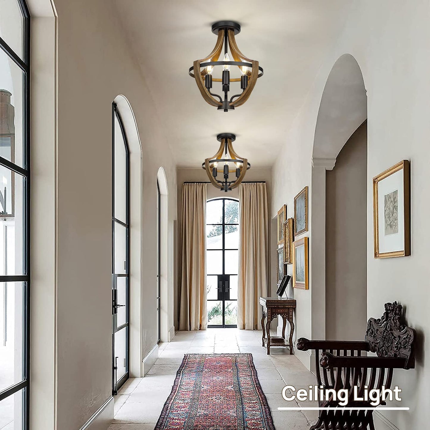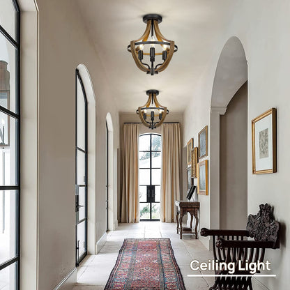 - 【Modern Farmhouse Style】The flush mount chandelier is carefully crafted by a skilled craftsman. Simple profiled curve profile, retro wood grain finish, so that this farmhouse ceiling light fixture is full of modern farmhouse. Ideal for kitchen Island, bedroom, hallway, entryway, stairway, dining & living Room.