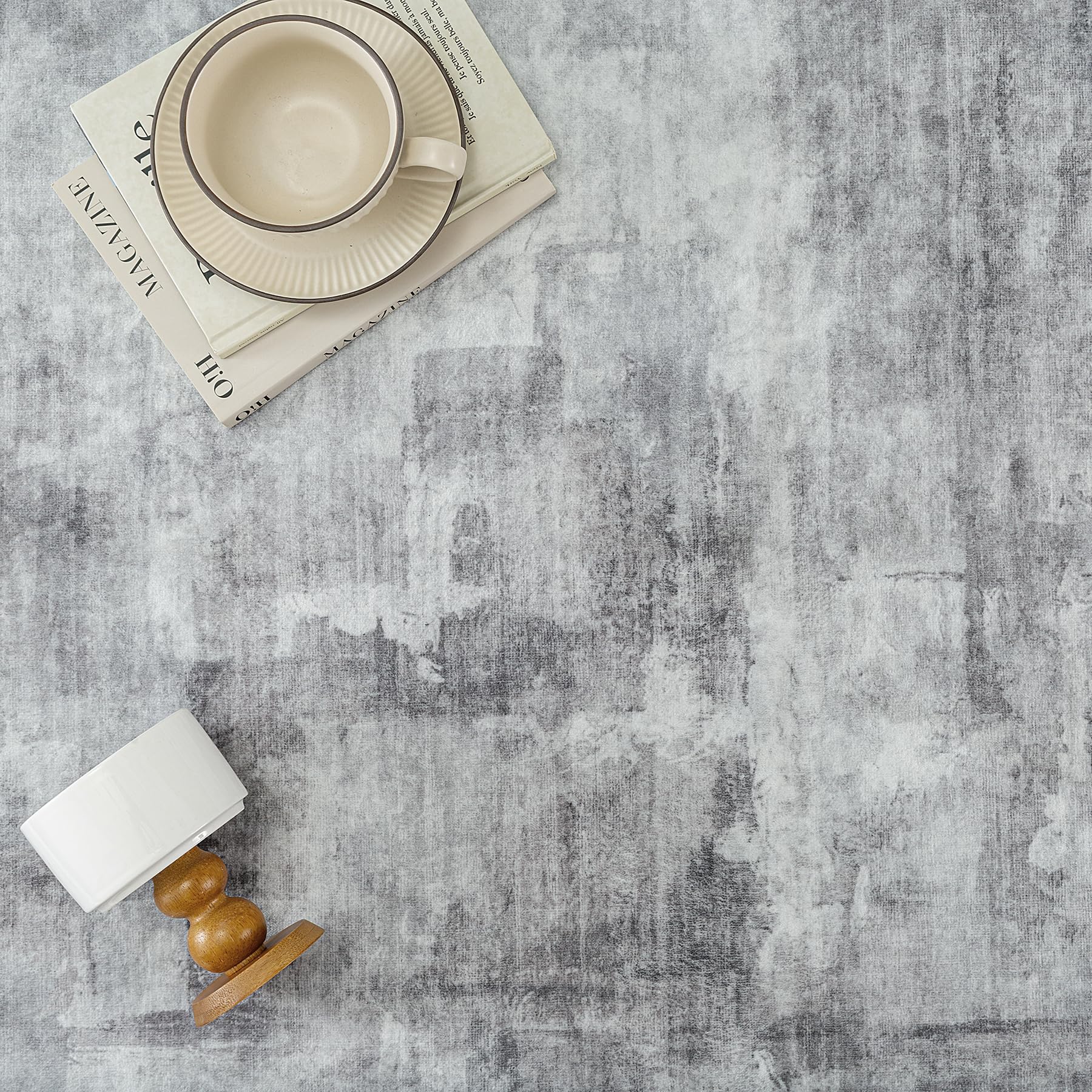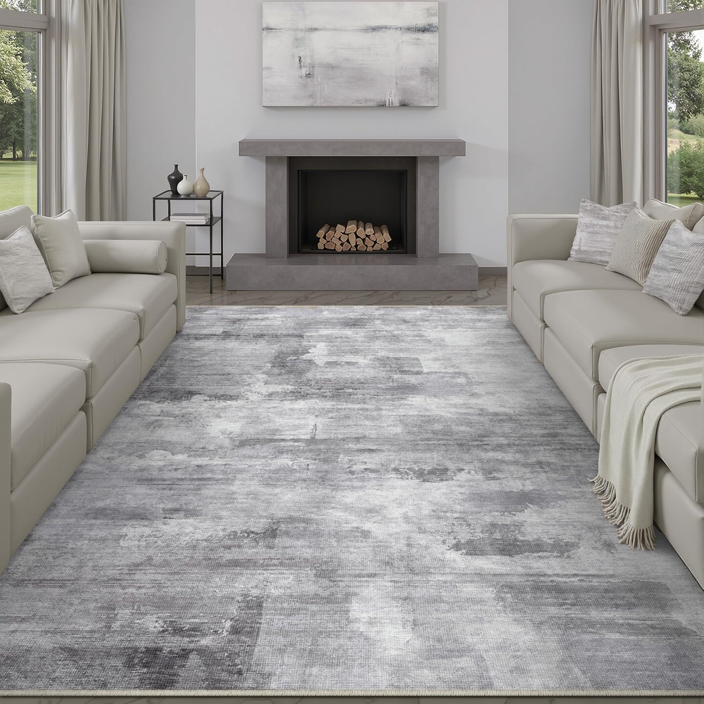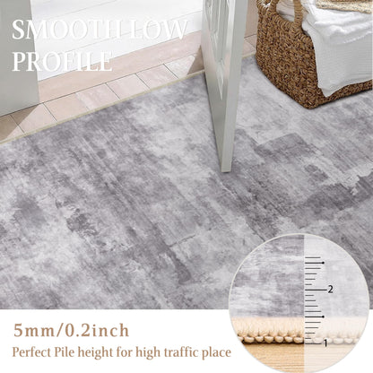 WondRg 6x9 Washable Area Rug Grey Abstract Modern Living Room Bedroom Large Throw Rug Non Slip Soft Thin Simple Indoor Floor Carpet for Office Entryway Kitchen Nursery Decor