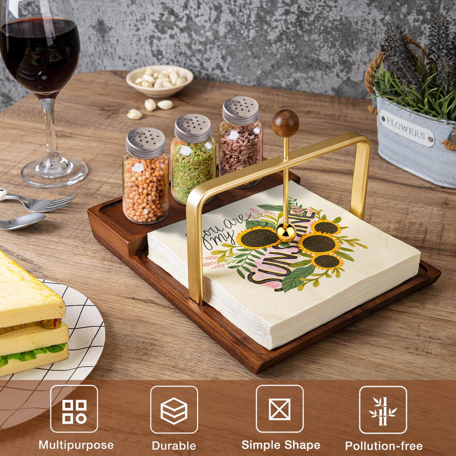 - A KITCHEN ESSENTIAL: This beautiful wooden napkin holder is designed with care and attention to detail, practical, elegant and versatile enough to add an artistic touch to any setting. These beautiful napkin holders for paper napkins will impress you when you set your table.