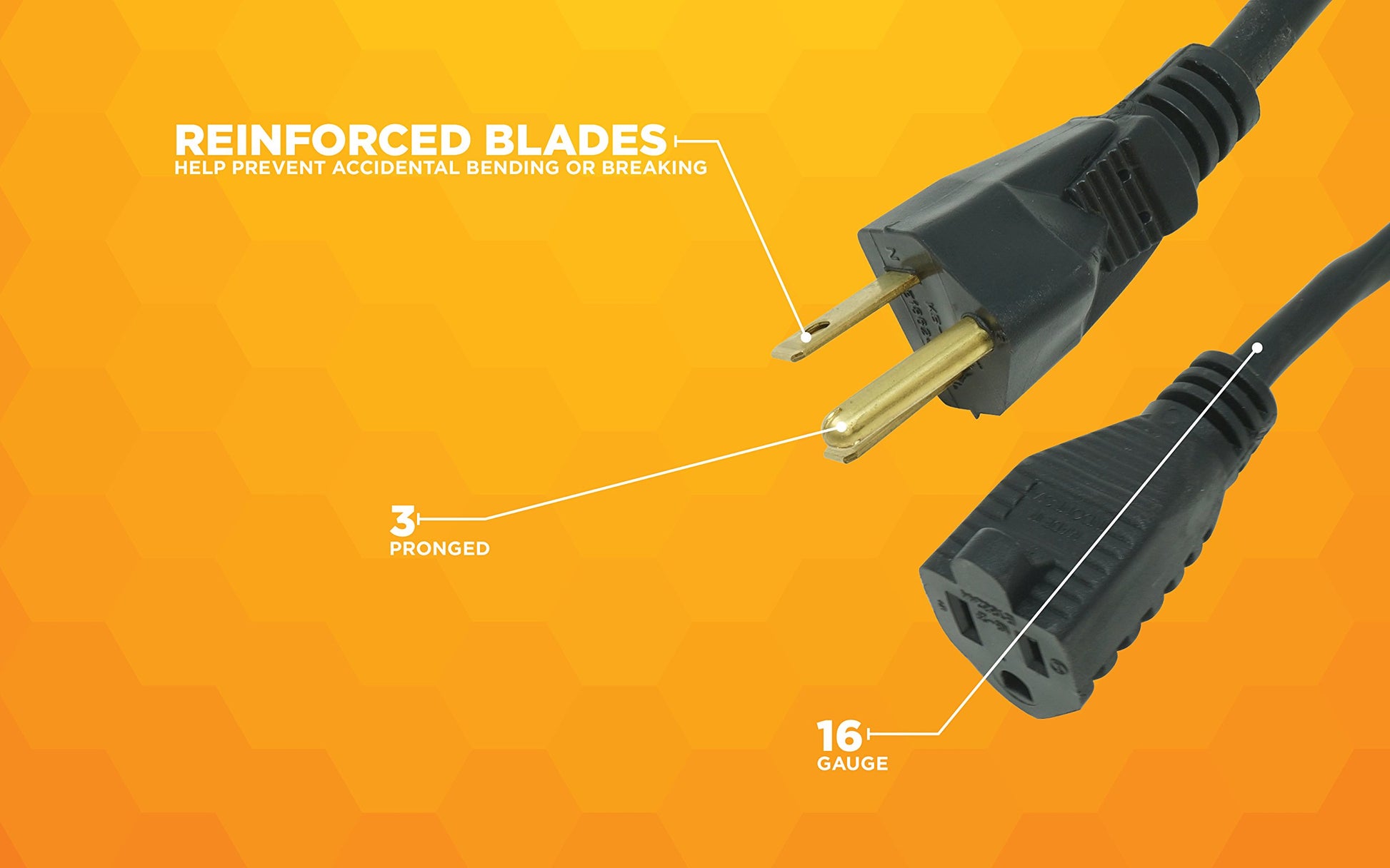 - DISCREET BLACK EXTENSION CORD: the three prong extension cord has a neutral black color that blends into the environment; the vinyl jacket of the extension cords also don’t leave unsightly marks on the floor