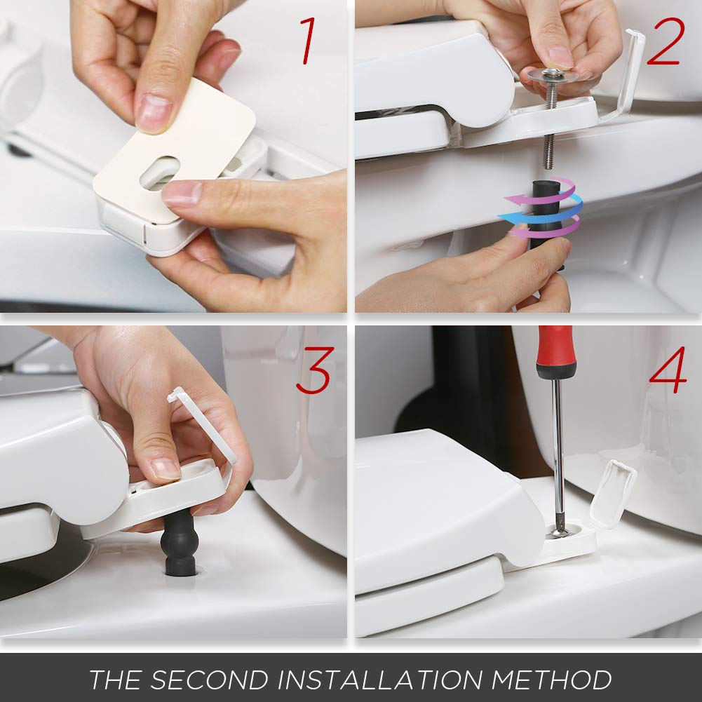 • 【Perfect accessories】The toilet seat has two kinds of accessories (plastic screws: bottom mount, metal screws: top mount), you can choose the right screw for your toilet. In addition, we also offer two rubber pads to protect the hinge.
