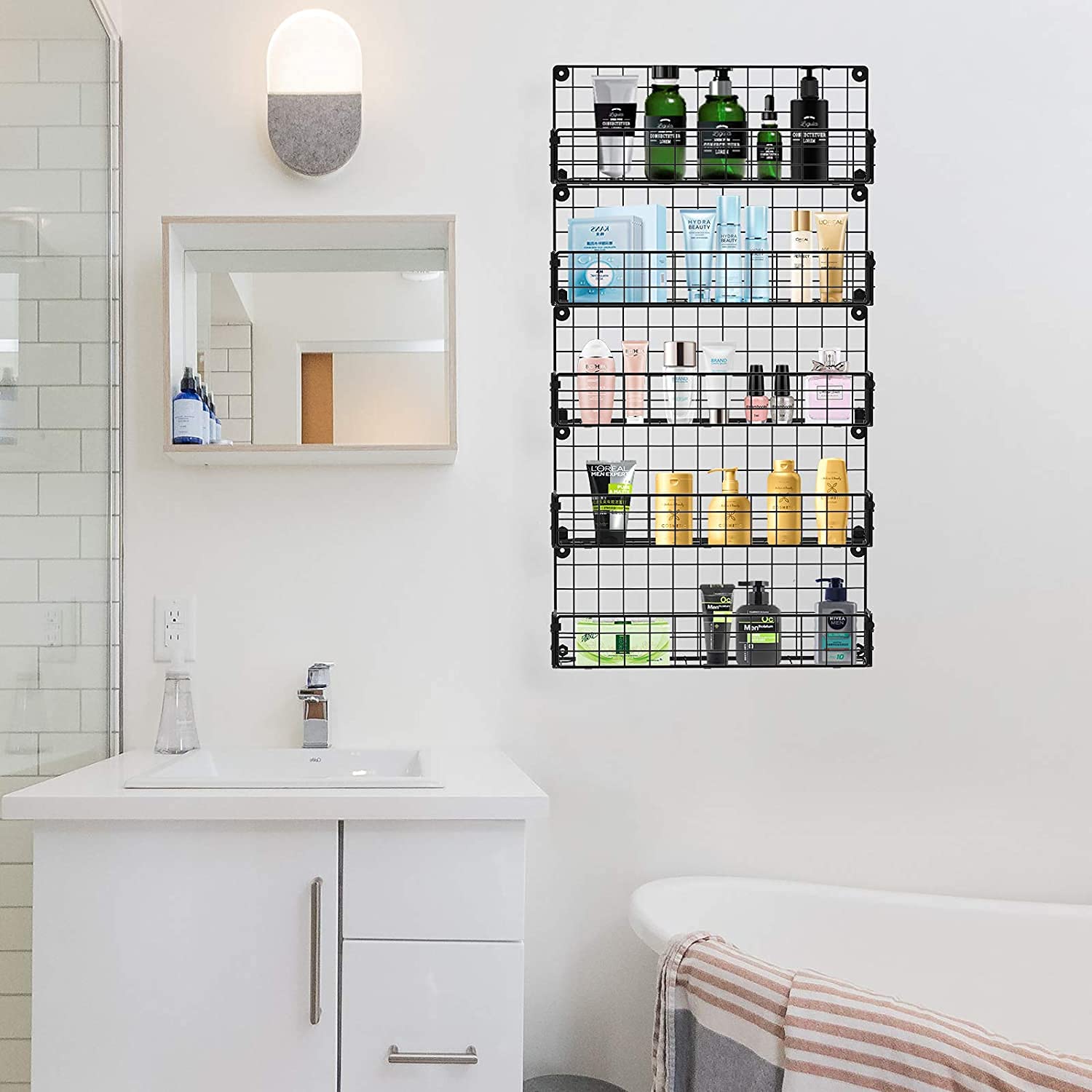 - 【Multi Function】 Our hanging spice rack can answer all your needs! In the kitchen, it can storage your desired spices, ingredients, small jars, tea bags, etc; In the bathroom, you can use it to storage lavatory essentials, cosmetics and towels; In the home, you can use it to storage craft supplies, medicine bottles and other gadgets; Also can storage much more items if want...This wall mount spice rack always knows your request and easily to makes more space for you, no more clutter in your home and kitchen.