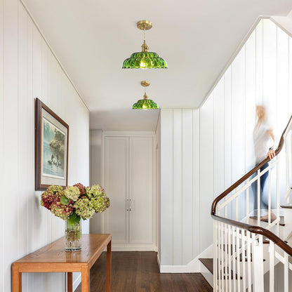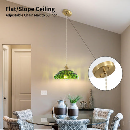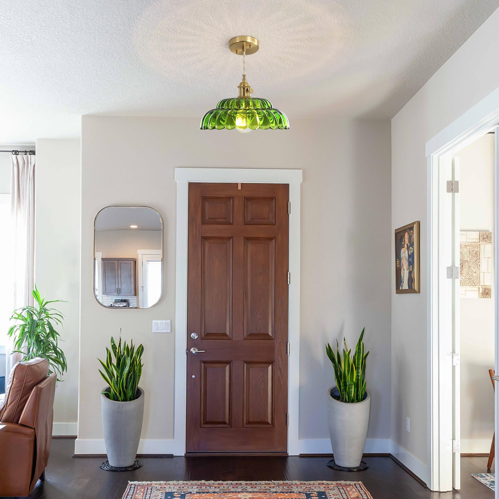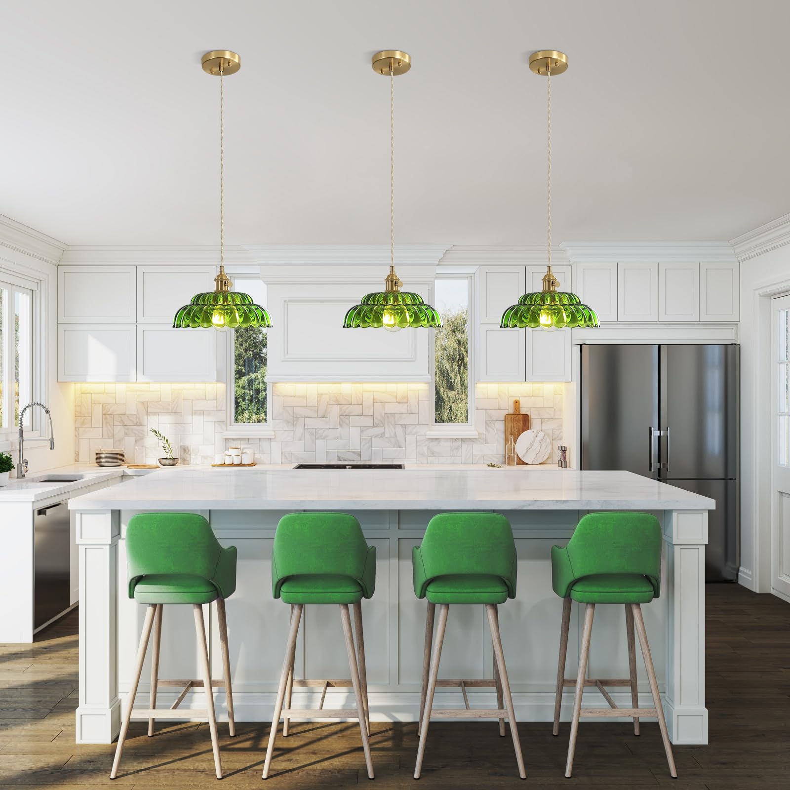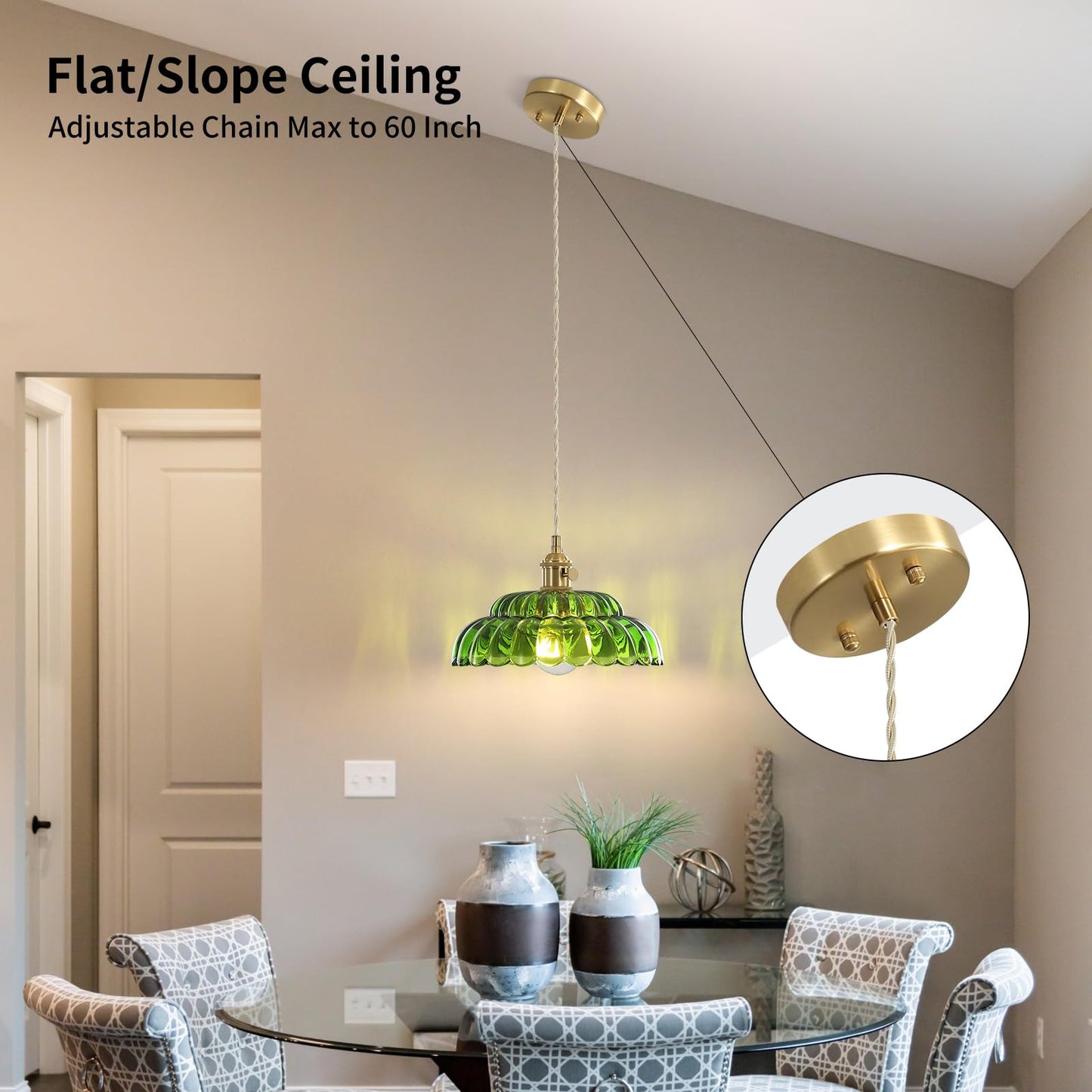 XIYOUVE 2 Pack Pendant Light with Lotus Green Glass Lampshade, Brass Vintage Pendant Light, Adjustable Hanging Light, for Kitchen Island Dining Room Hallway, E26 Socket (Bulbs Not Included)