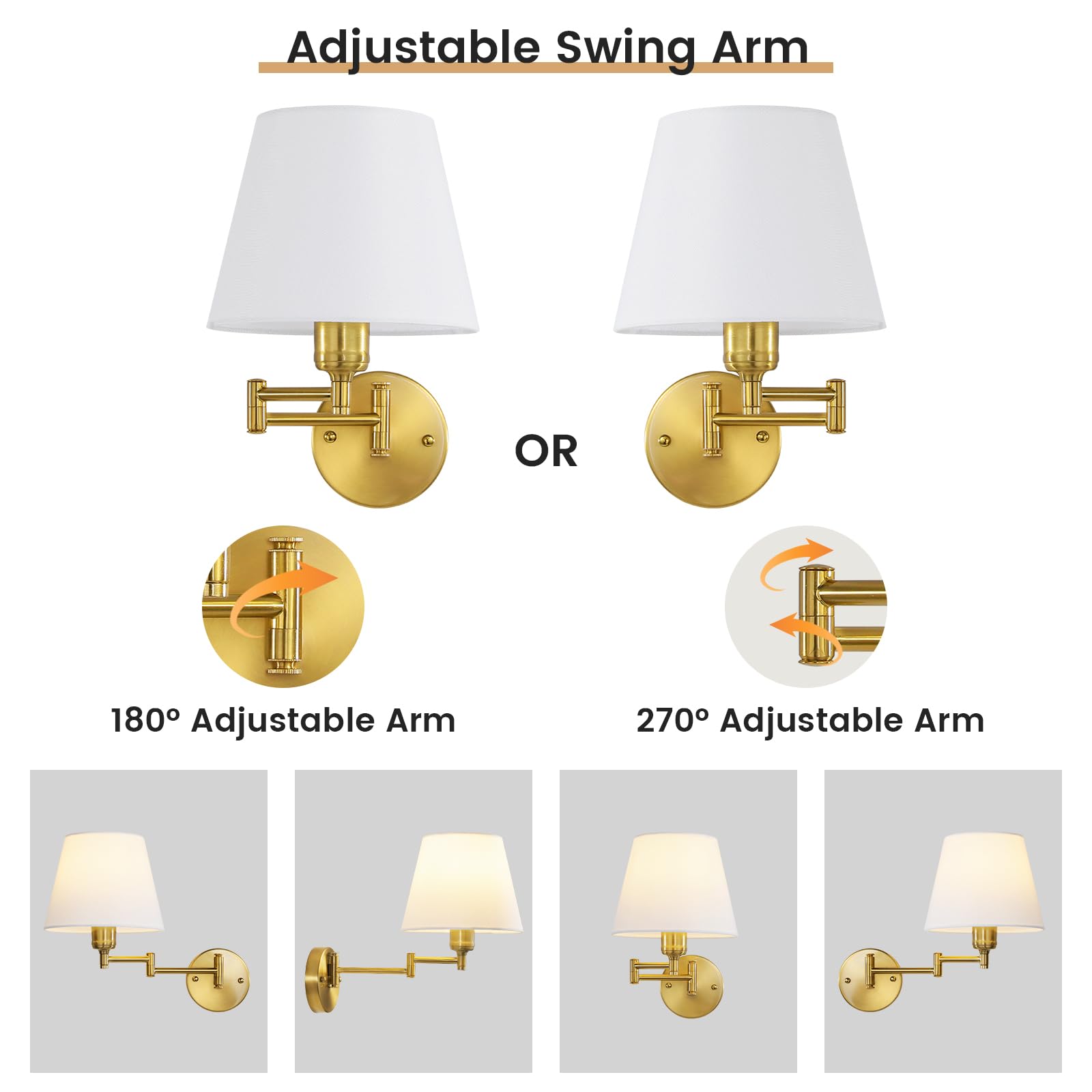 - 【Flexible Swing Arm Wall Sconcee】Adjust swing arm from left and right 180 degrees freely, two arms can be adjusted horizontally 270 degrees, extend well, so you can freely adjust the angle of lighting to meet your lighting needs.