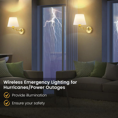 - 【Battery operated wall sconces set of Two】his cordless wall sconce has a left-right adjustable swing arm, allowing you to freely position the lighting based on your space layout and personal needs. With the high-quality fabric lampshade, our battery operated wall sconce emits a gentle glow, reducing eye strain and creating a cozy, relaxing ambiance. Whether you're reading, working, or resting, the gold battery operated wall sconces can always provide the optimal lighting effect for you.