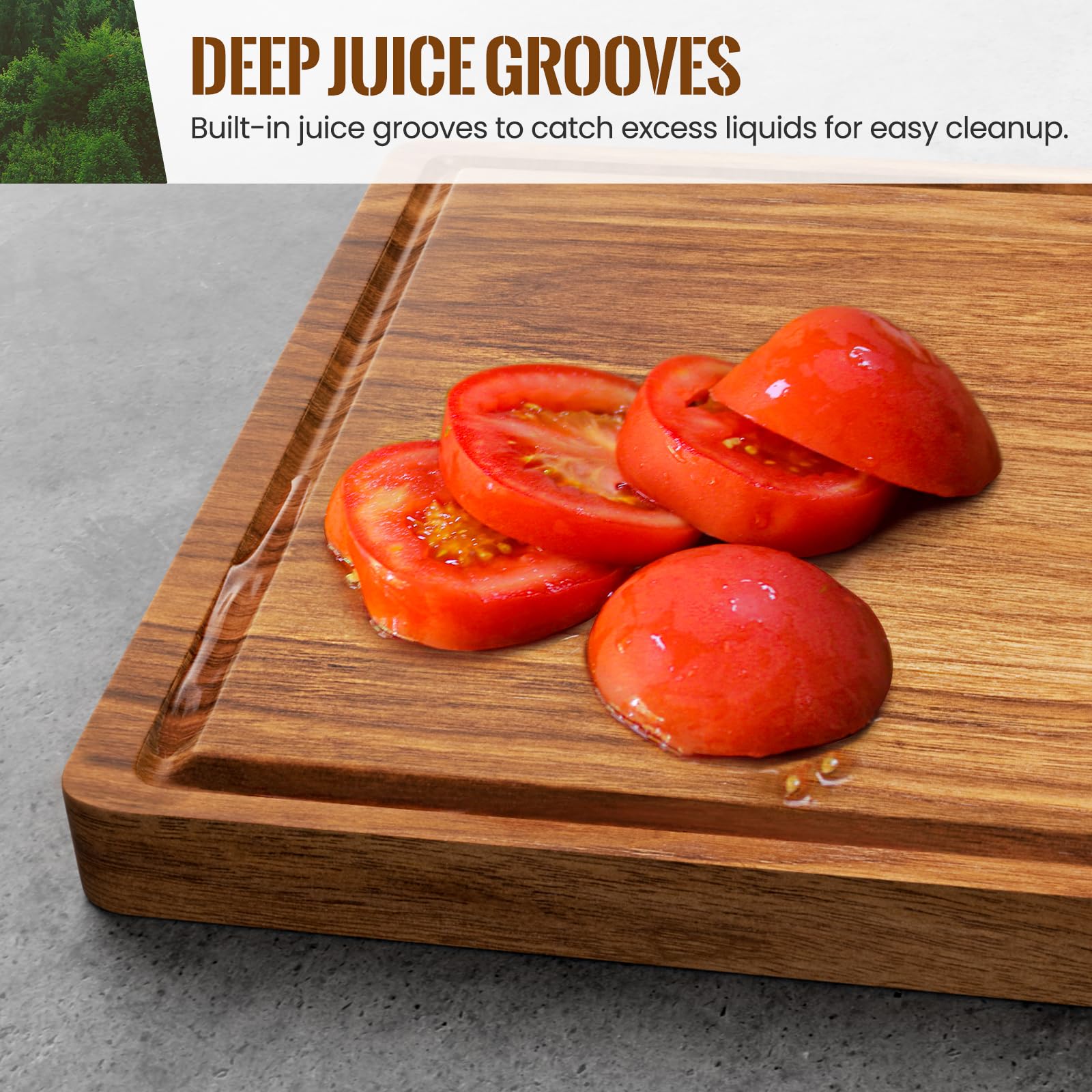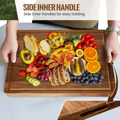XX-Large Acacia Wood Cutting Board for Kitchen, 24x18x1.2 Inch Reversible Wooden Chopping Board Thick Charcuterie Board with Juice Grooves and Handle for Meat, Cheese, Vegetables, Fruits, Bread