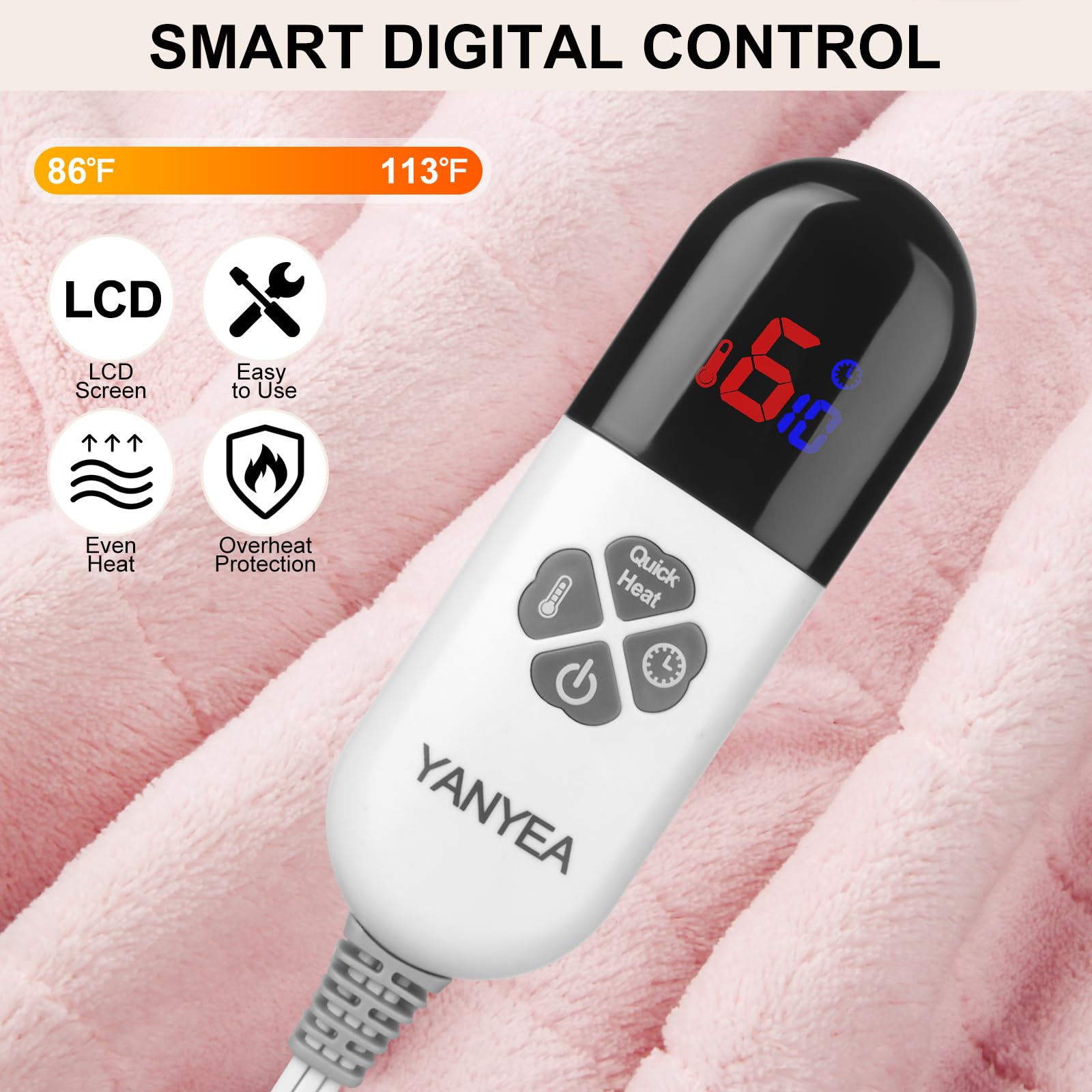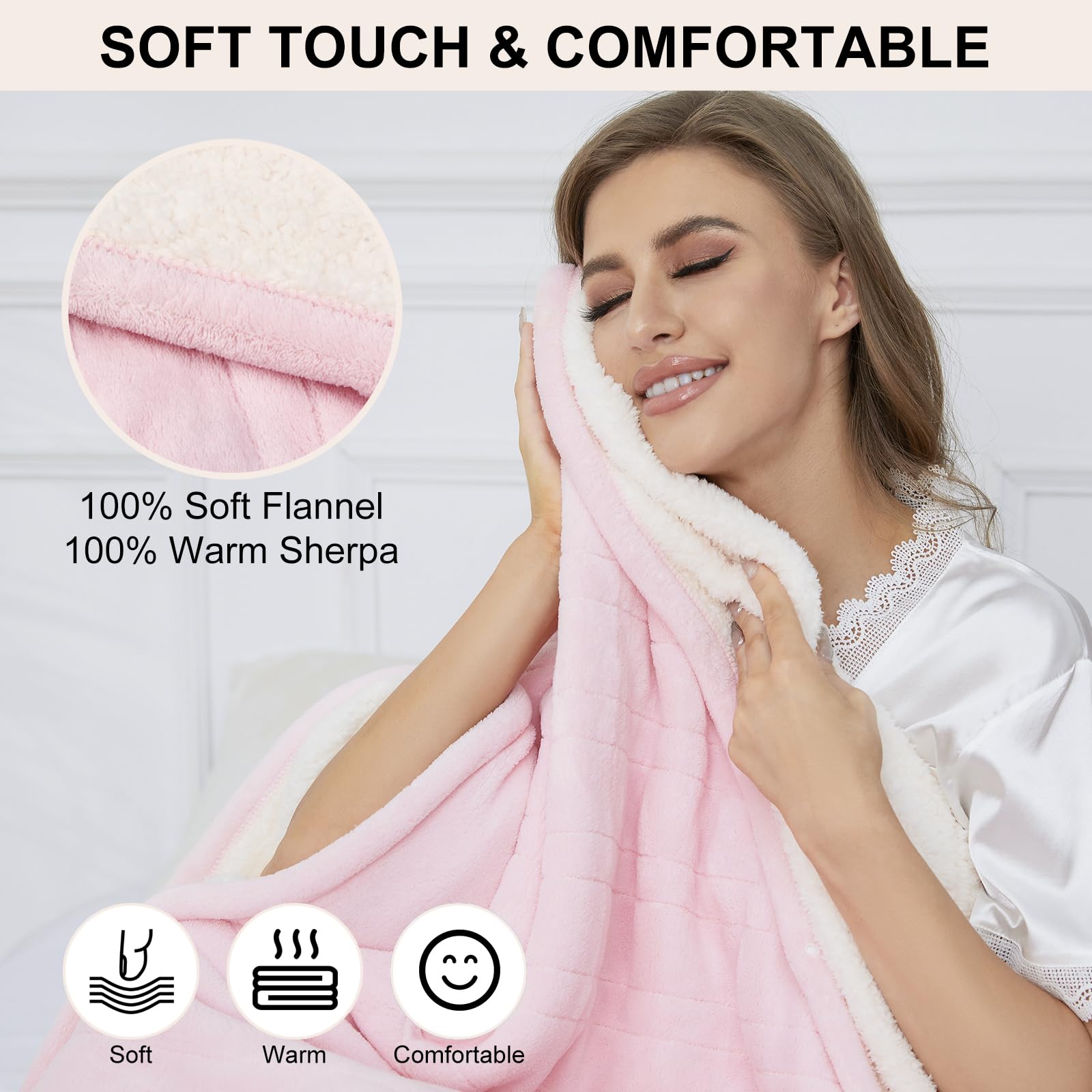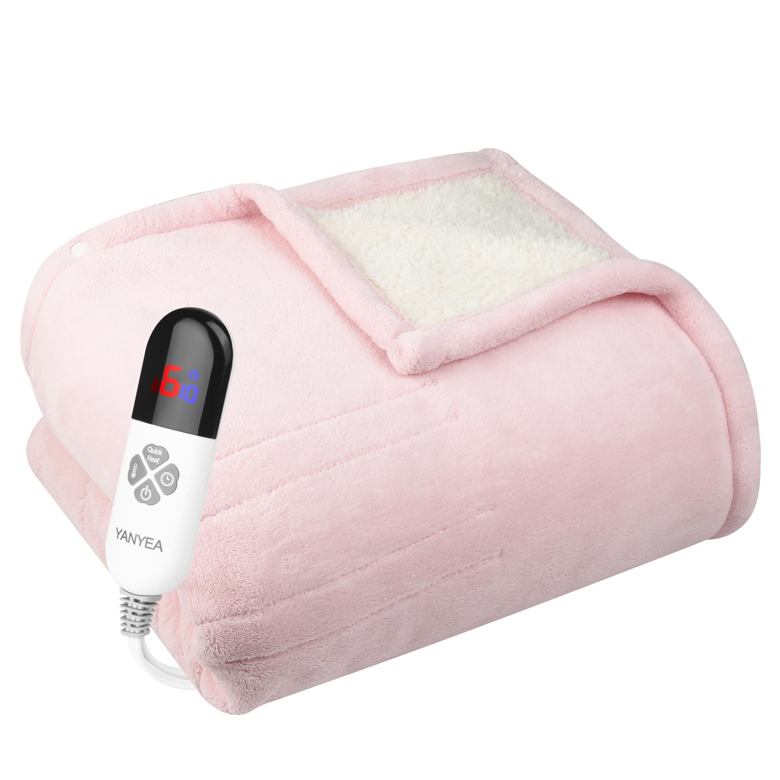 YANYEA Electric Heated Throw Blanket Sherpa 62"x84" Pink Machine Washable 6 Heat Settings 10 Hours Auto Off Overheat Protection for Home Office Use