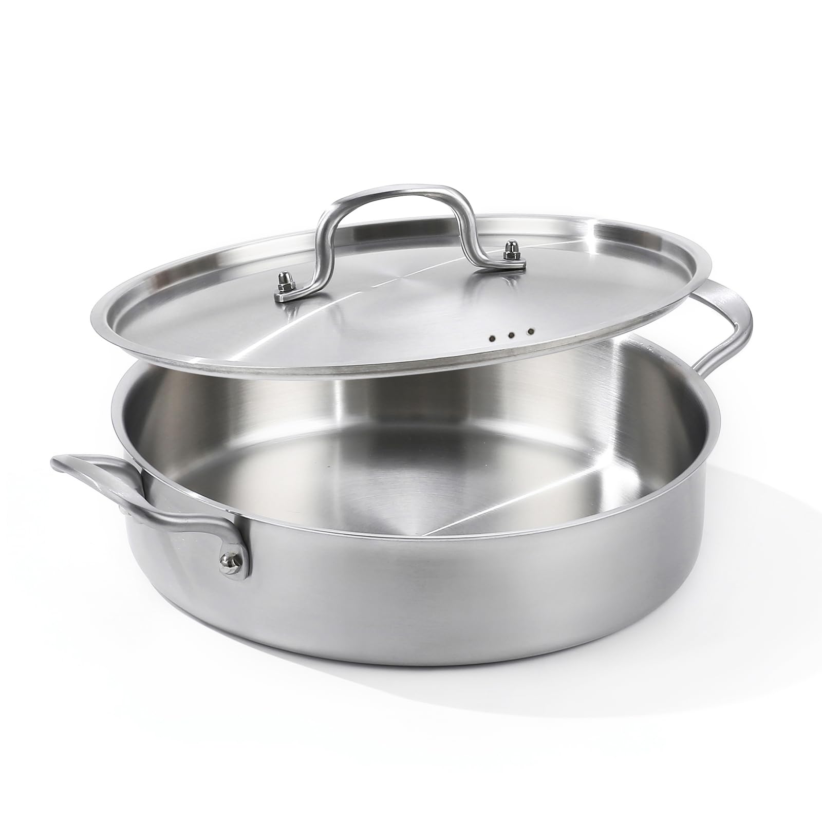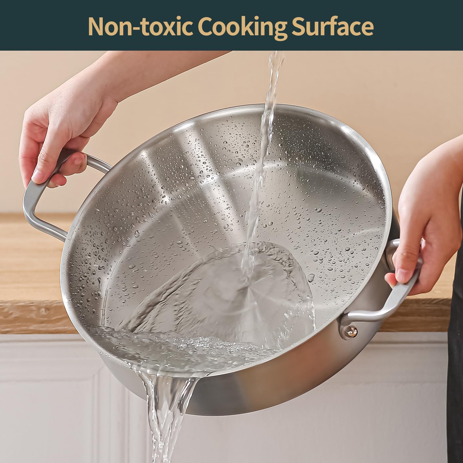- 【Food Grade Stainless Steel】Saute Pan are made up of top-grade stainless steel,, which is highly durable, corrosion-resistant, 18/10 Inner Surface offer completely non toxic Cooking surface
