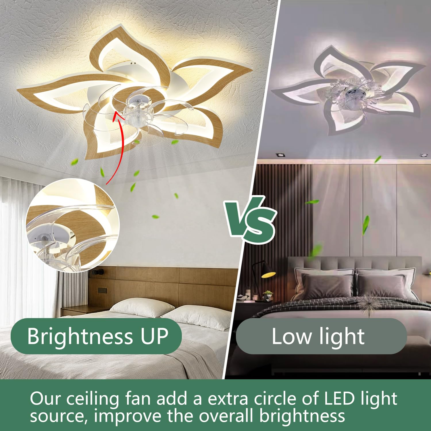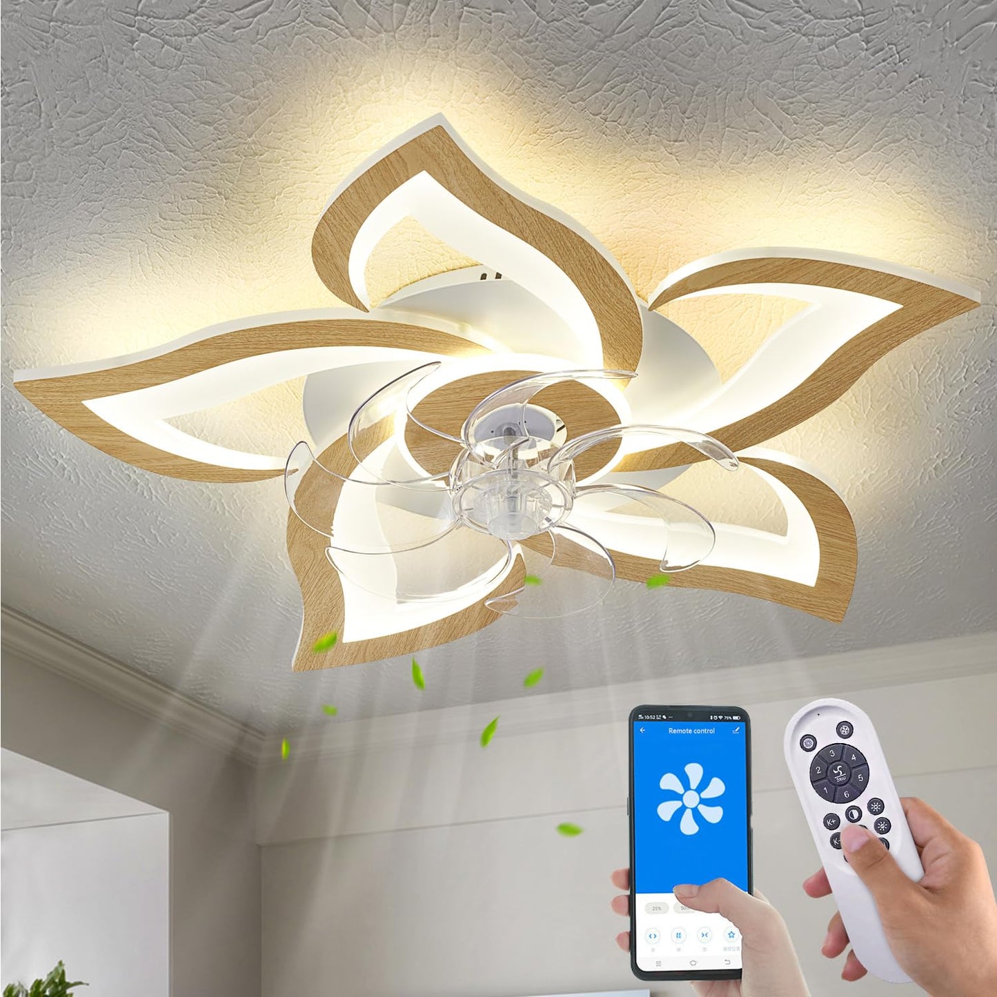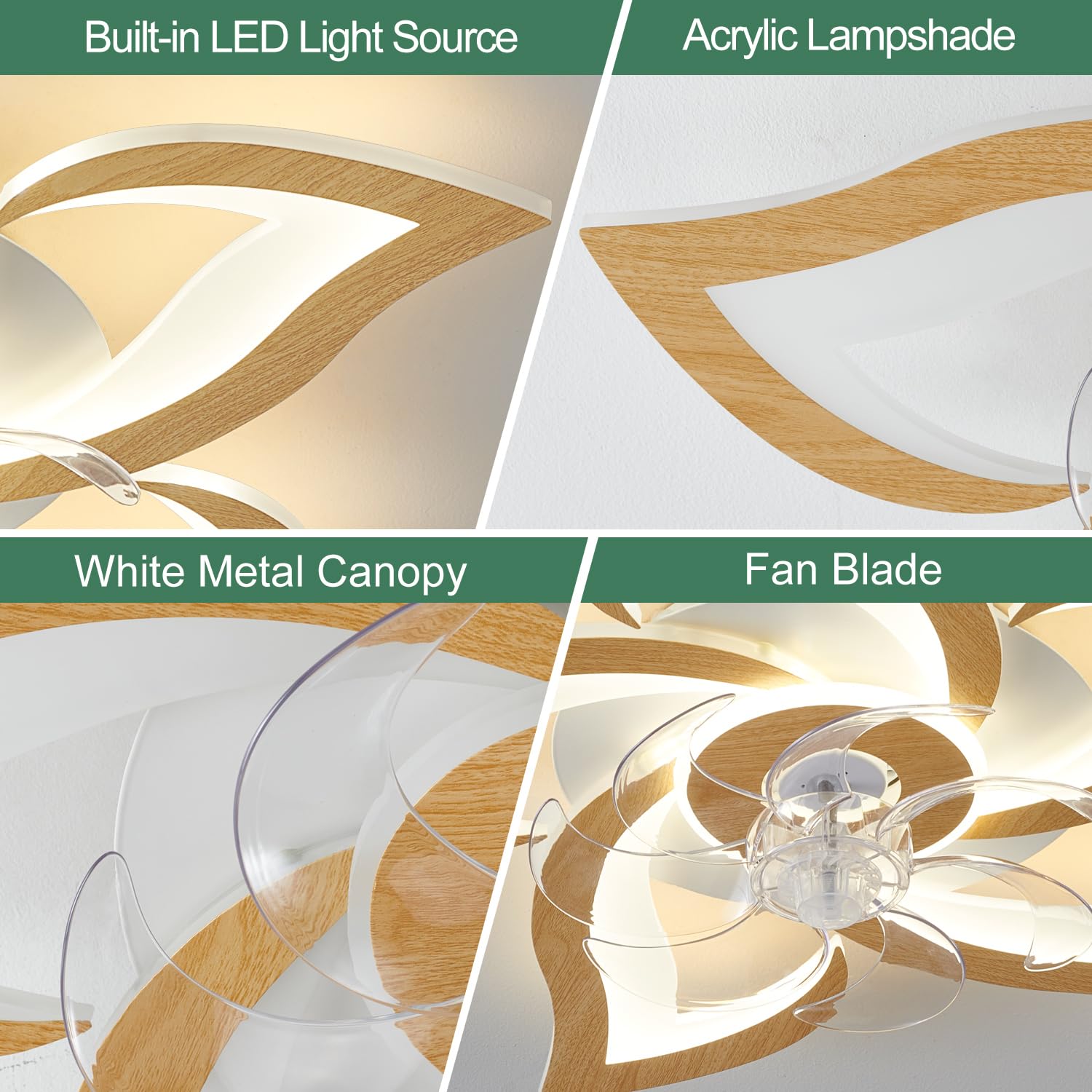 Yfrest Modern Ceiling Fan with Lights, Flush Mount Ceiling Fan with Remote, Low Profile Ceiling Fan with 3 Light Color 6 Speeds, bladeless Ceiling Fans for Kitchen Bedroom (Burlywood)