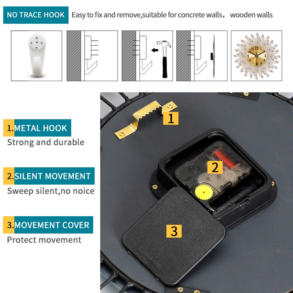 - 【Meaning&Design Of Wall Clock】- Cherish time,love life.The wall clock is hand-made with high-quality 72pcs iron needle and 60pcs sparkling crystals.The aluminum dial has arabic numerals for easy reading.Paste a free wall sticker beside the wall clock, looks great