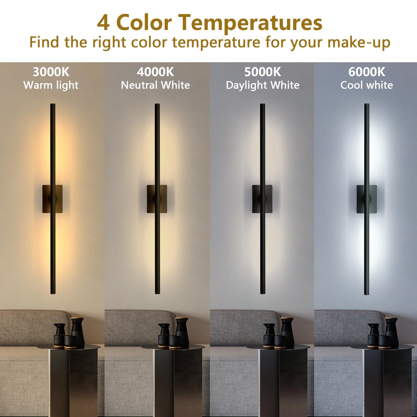 - 【4CCT Black Battery Operated Wall Sconce】Tailor the lighting to your preference with 4 color temperatures adjustable wall sconce (3000K warm white to 6000K daylight), From cozy evenings to productive workspaces, find the ideal lighting setting effortlessly with battery operated wall lights