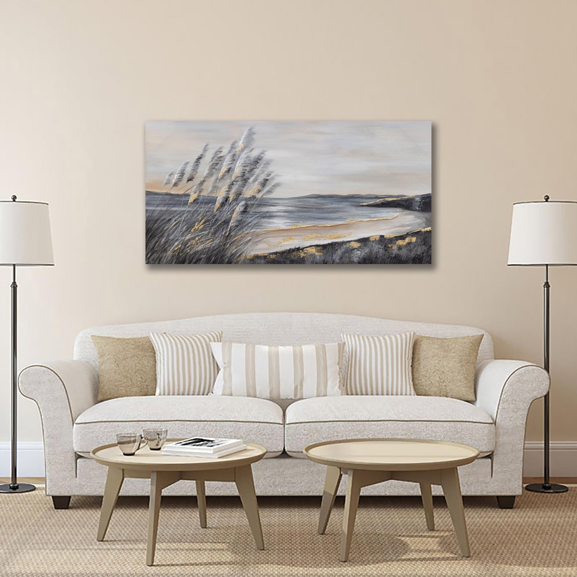 Yuaxker Ocean Wall Art Grey and Gold Ocean Art Canvas Painting Prints for Wall Decor Aesthetic for Living Room, Bedroom, Dining Room Office Home Artwork 20x40 inch
