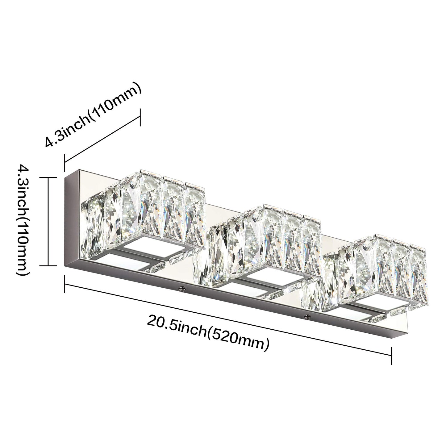 - 【Specification】 The dimension of 3 light bathroom vanity light is 20.4” * 4.3” * 4.3”(L*W*H). This crystal vanity light is perfect for bathroom mirror, medicine cabinet.