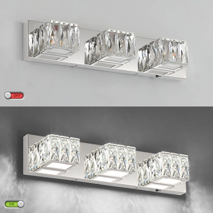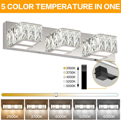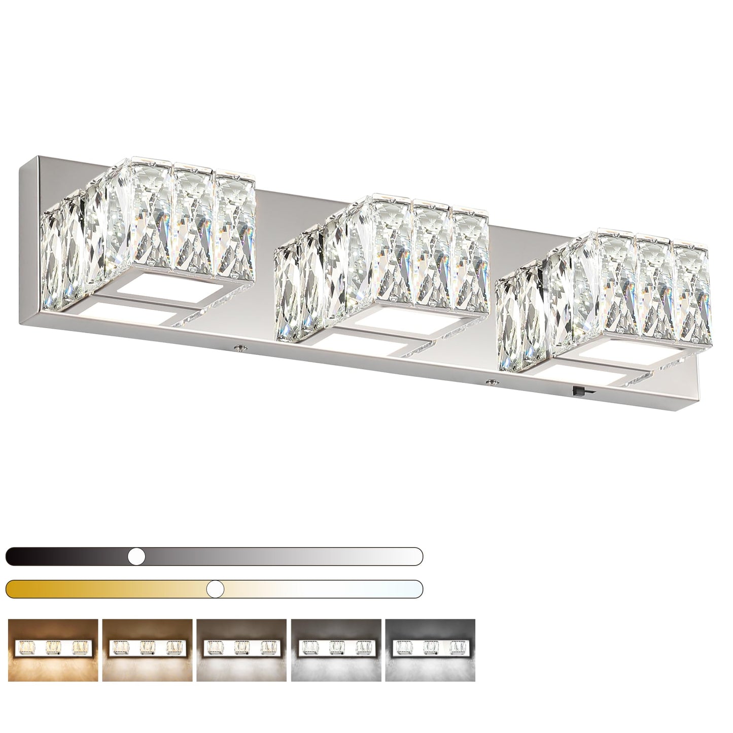 ZUZITO LED Bathroom Light Fixture Modern 3 Light Crystal Vanity Light Chrome Bathroom Wall Light 5CCT Dimmable