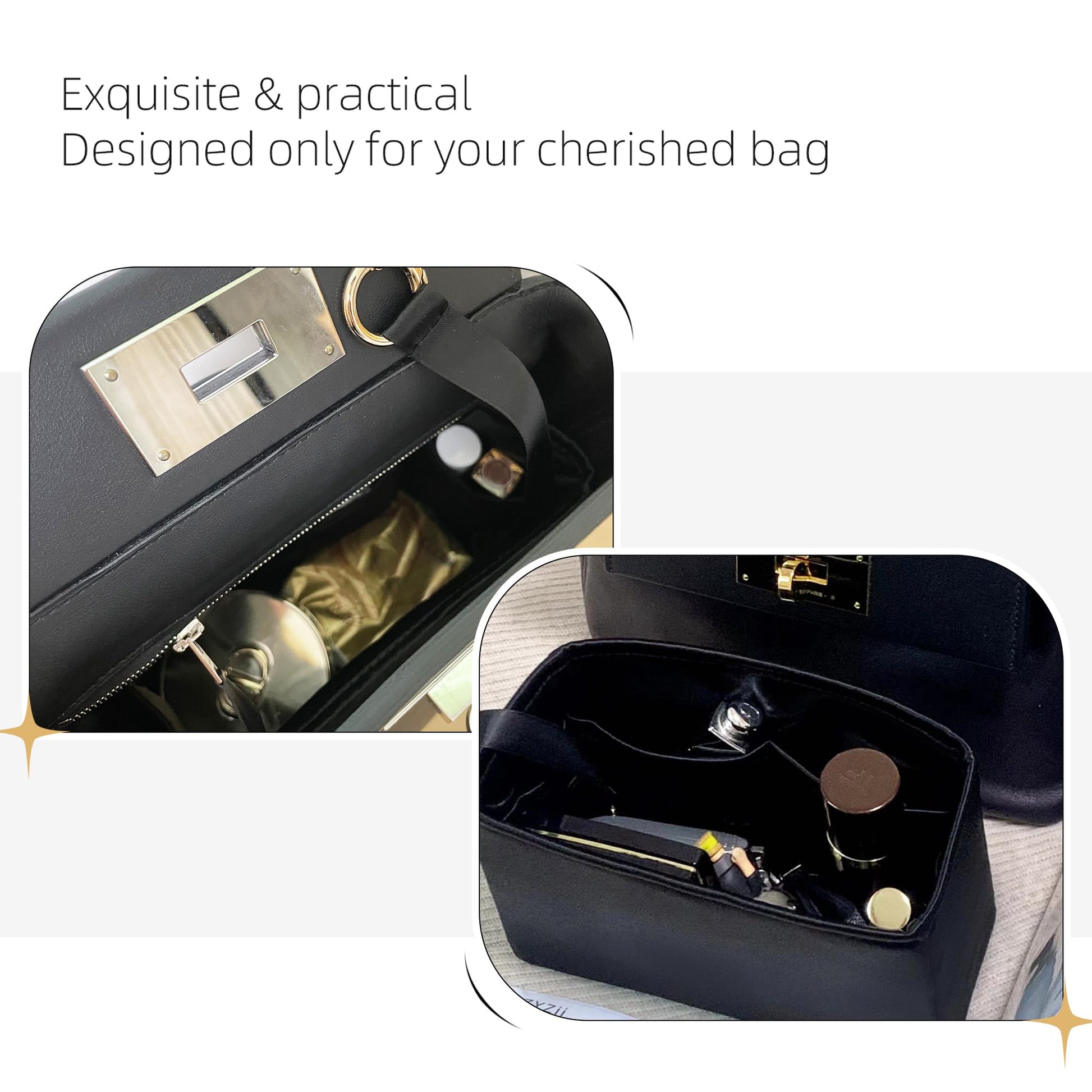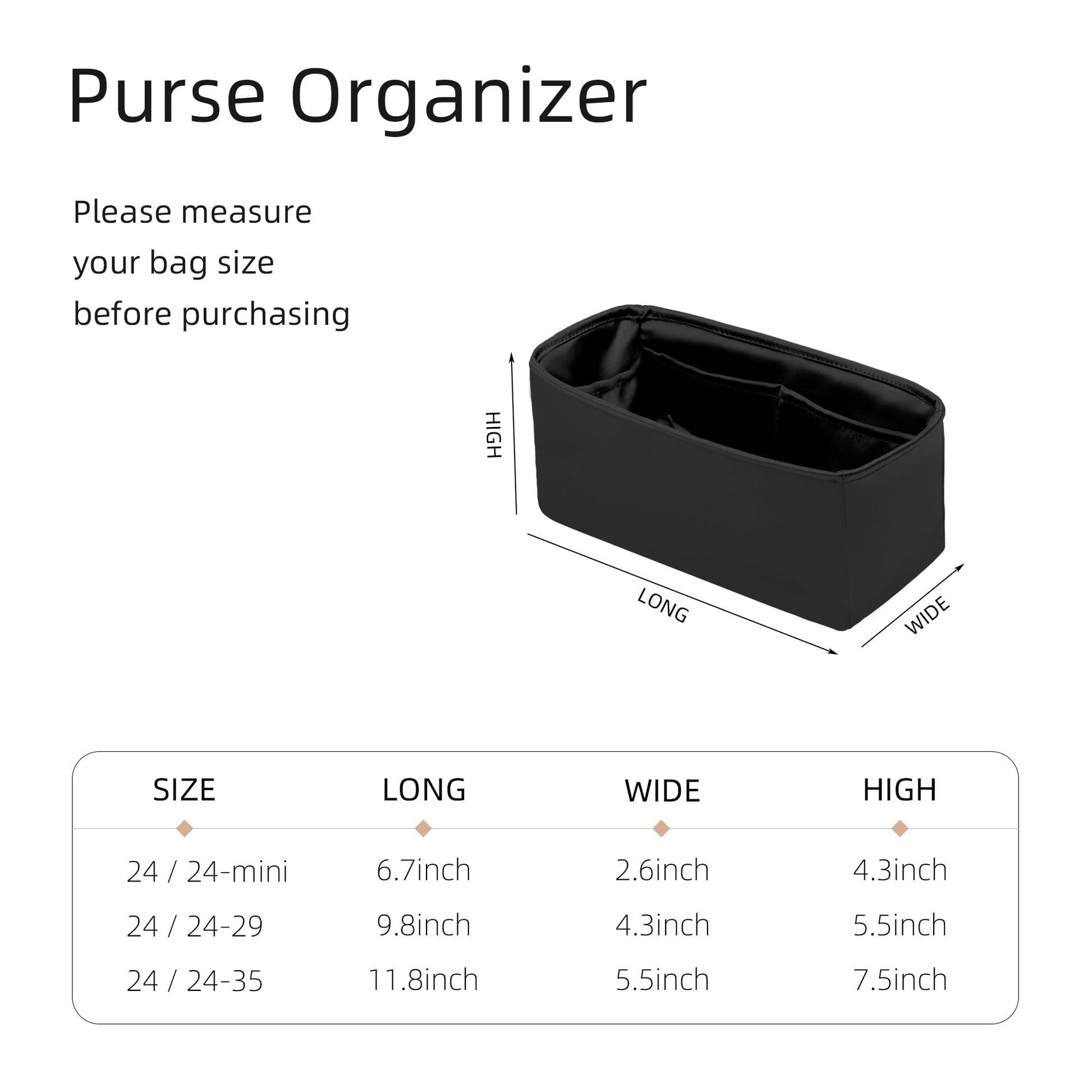 ZYZii Silk Purse Organizer for Hermes 2424 Mini/29/35,Insert Bag in Bag,Luxury Handbag Tote Lining Bag Shapers(Black,2424Mini)