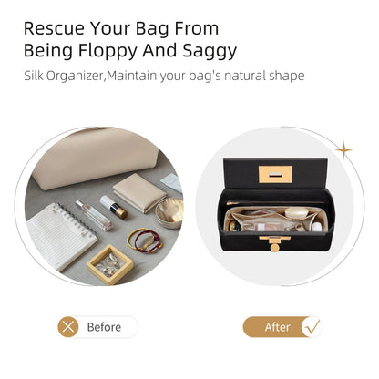 - 【New Material】 Our organizer is made of high-end silk, which is lightweight, breathable, and easy to clean, while also providing a smooth and glossy appearance.Its quality and style make it the top choice for luxury handbag owners.